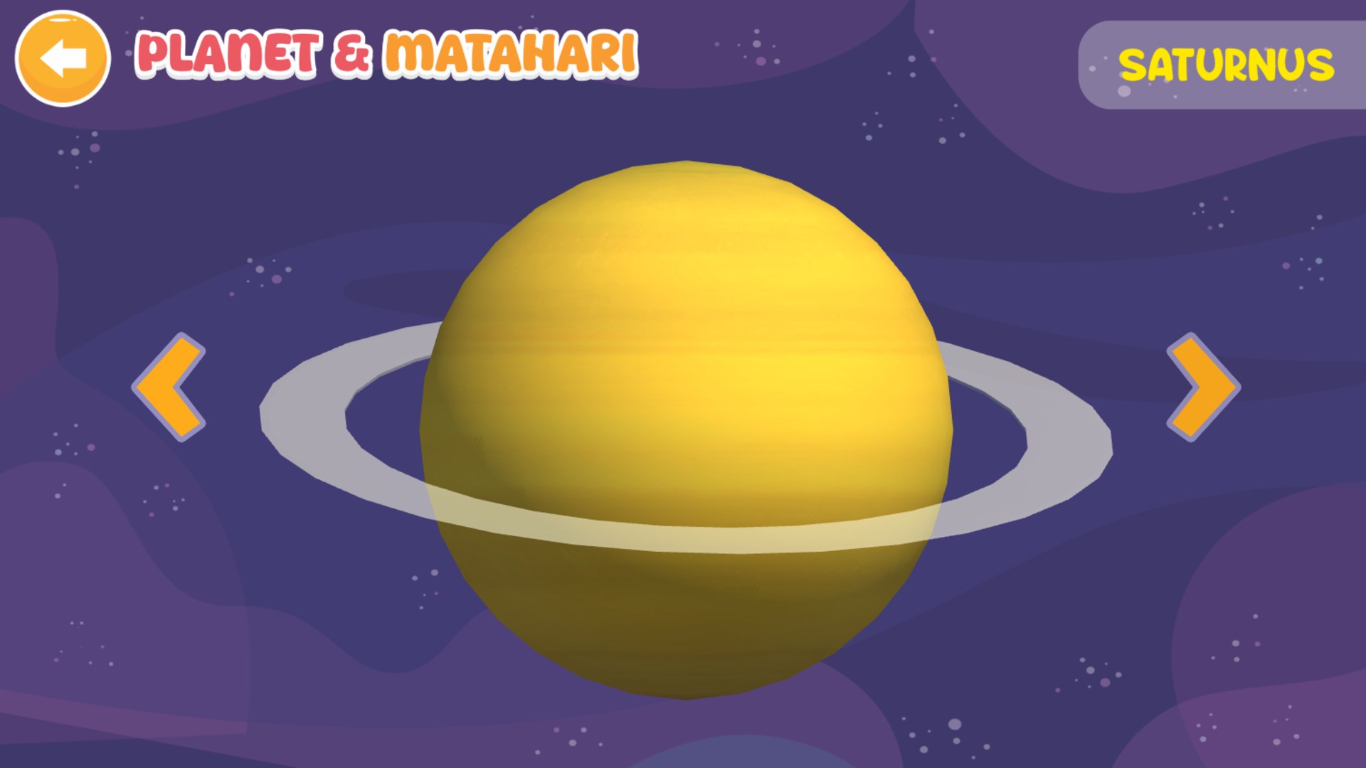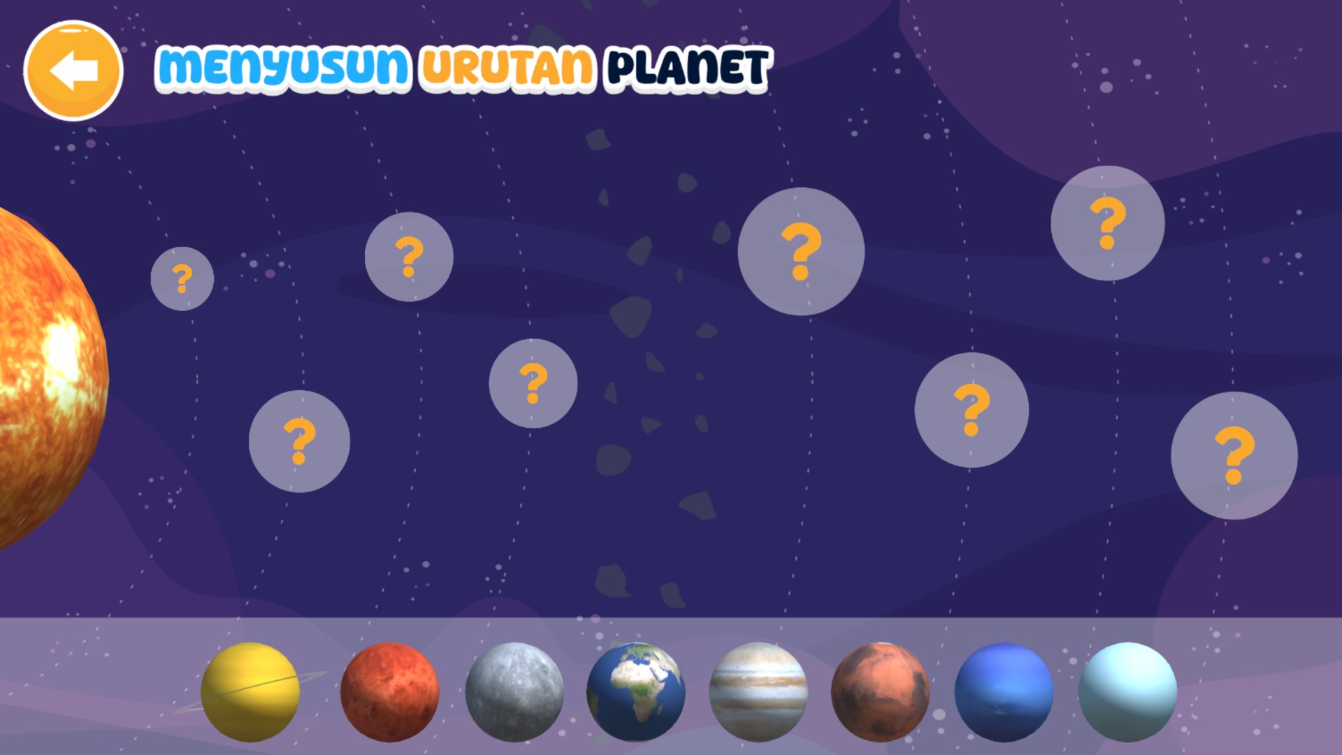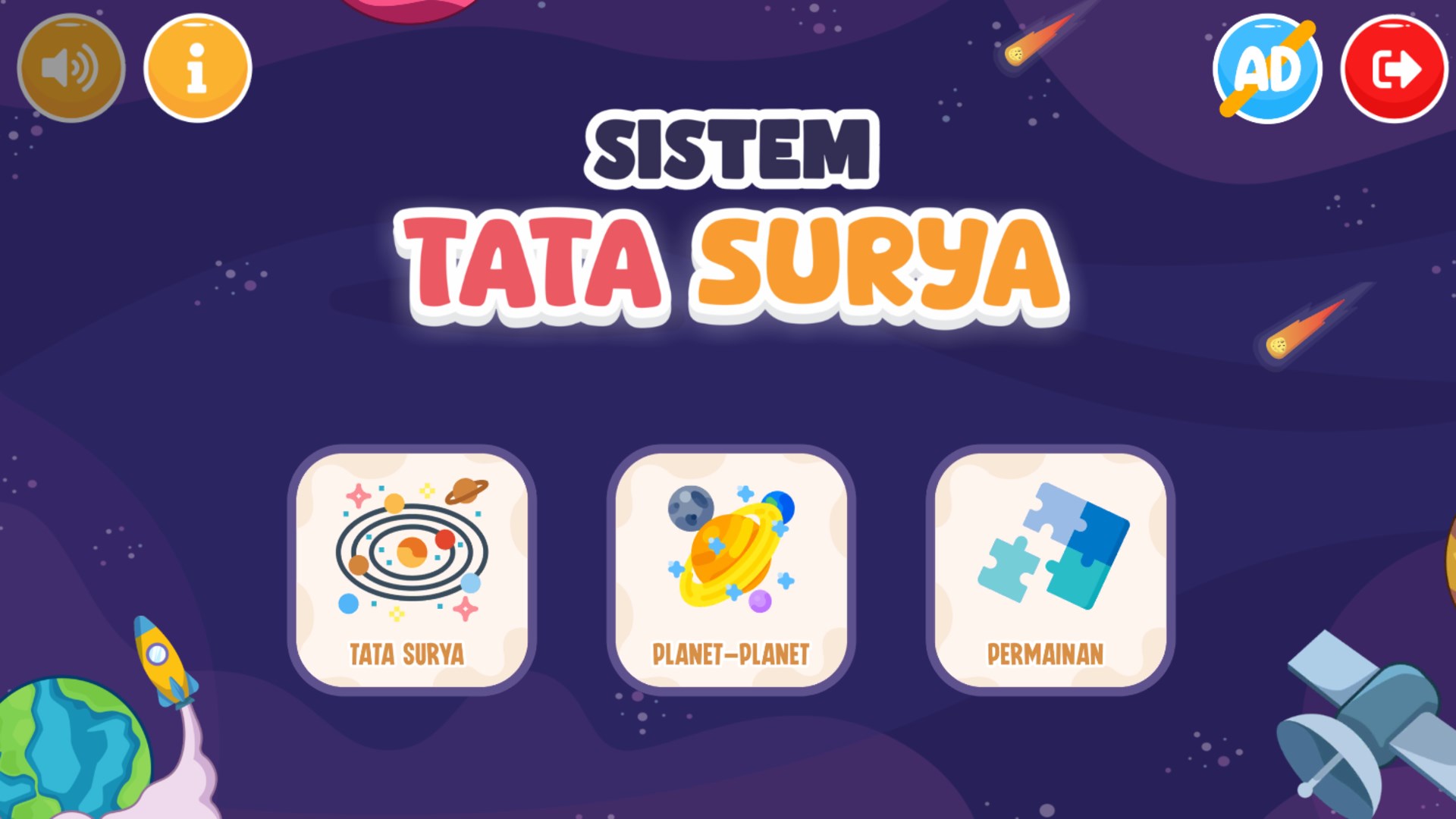 Sistem Tata Surya - Aplikasi Tata Surya berisi materi belajar mengenal sistem tata surya yang berisi matahari dan planet-planet. Aplikasi disajikan dalam tampilan yang menarik dengan visualisasi 3 Dimensi. Terdapat simulasi susunan dan pergerakan planet dalam tata surya, sehingga lebih menarik dan mudah dipahami. Selain itu terdapat permainan edukasi berupa puzzle nama-nama planet dan puzzle urutan susunan planet