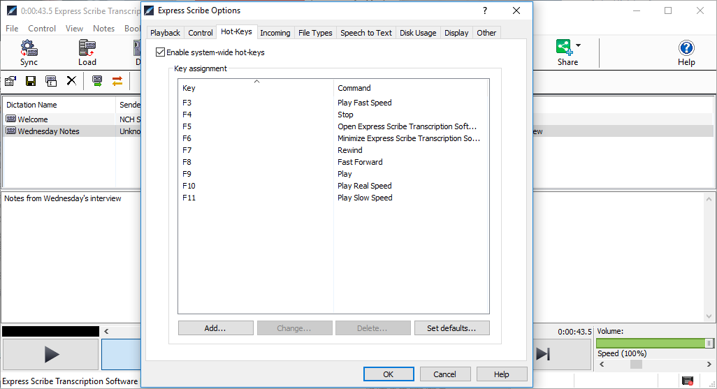 Express Scribe Transcription Software is the fastest and easiest way to transcribe audio files. Designed for typists, this program gives you the control you need when transcribing with features including hot keys, foot pedal support, multi-channel control, file management, and much more. Support for all the popular formats like WAV, MP3, WMA, and more.