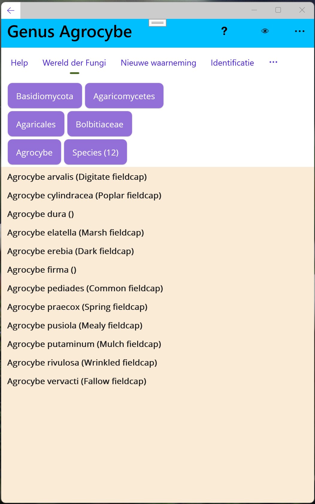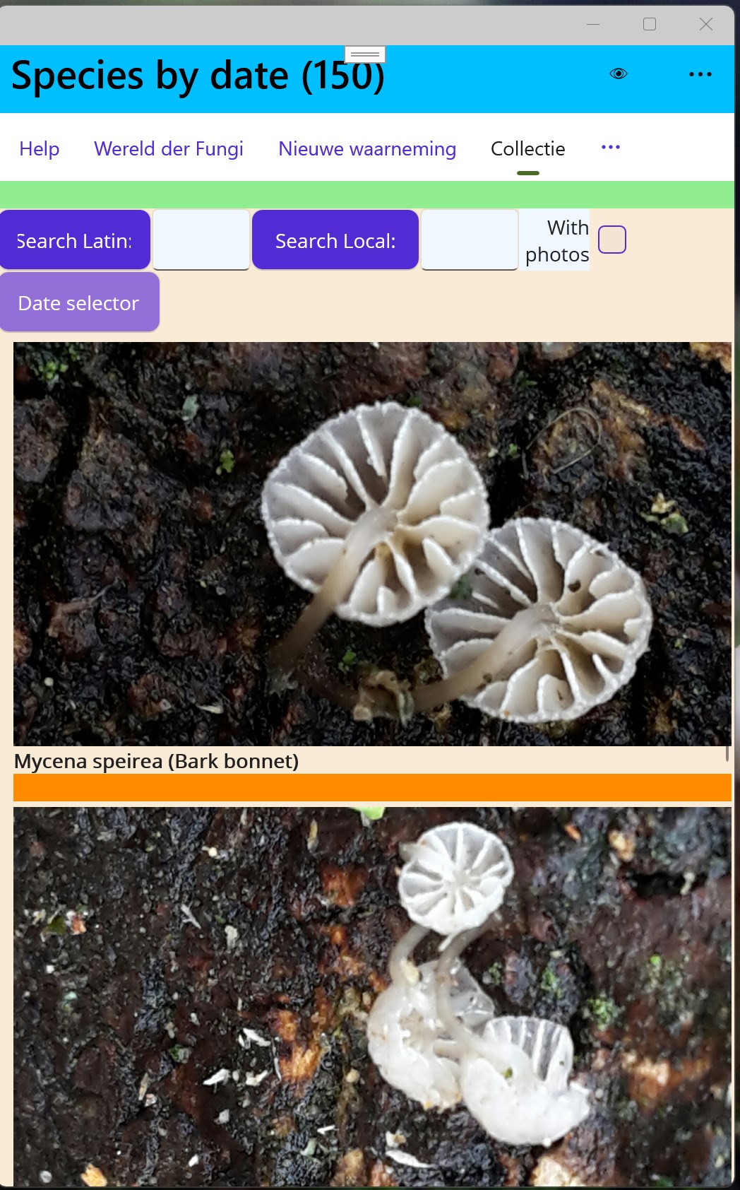 2. Scroll through all fungi (menu World of Fungi)