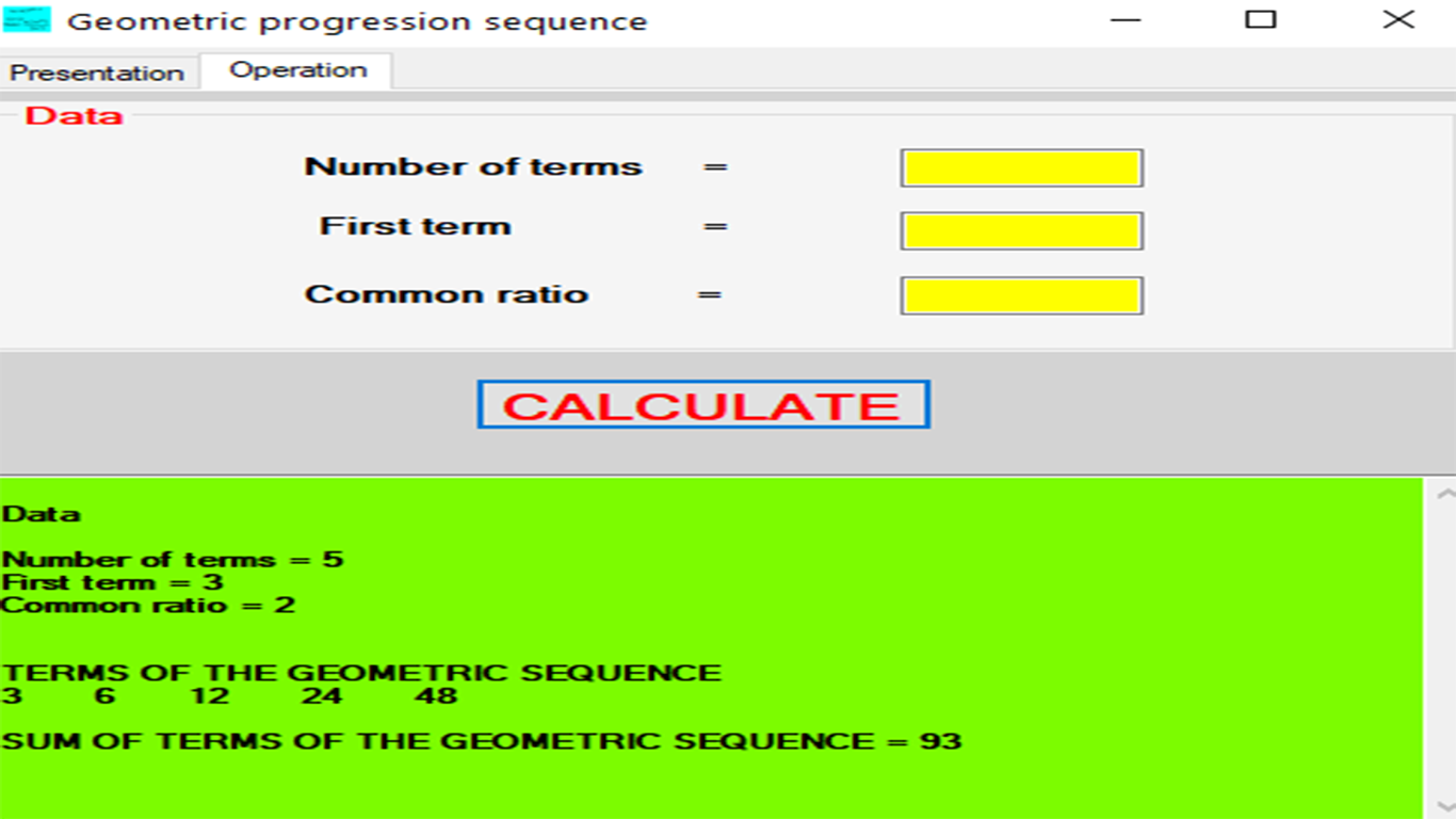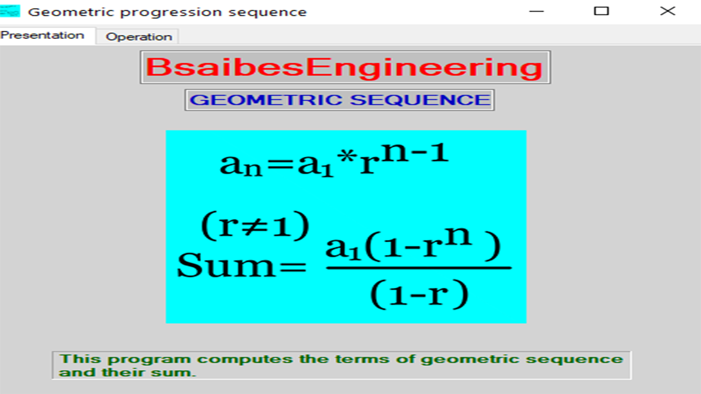 This program computes the terms of geometric sequence