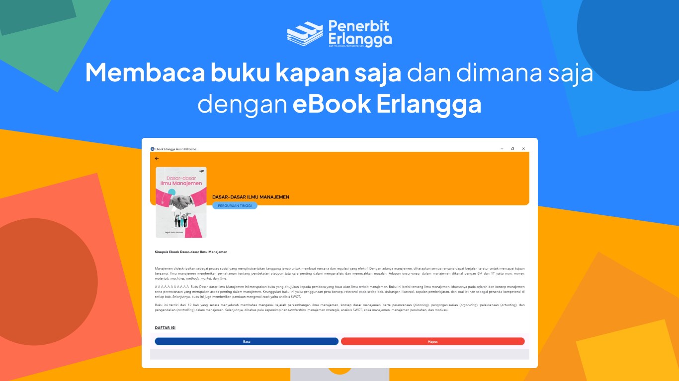 Aplikasi untuk membaca buku digital SD-SMP-SMA-SMK-TK-ANAK-UMUM dan Perguruan Tinggi dari Penerbit Erlangga.