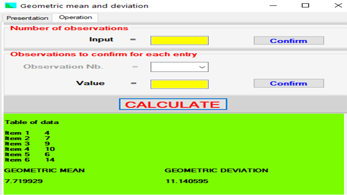 This program computes the geometric mean and standard