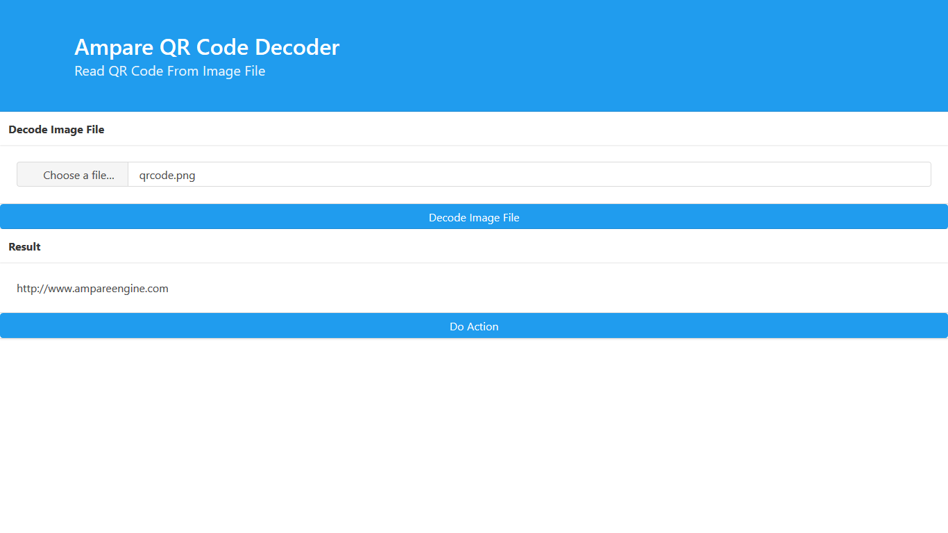 Ampare QR Code Reader From Image is a simple application to decode qr code from image file then display result. No Camera Need.