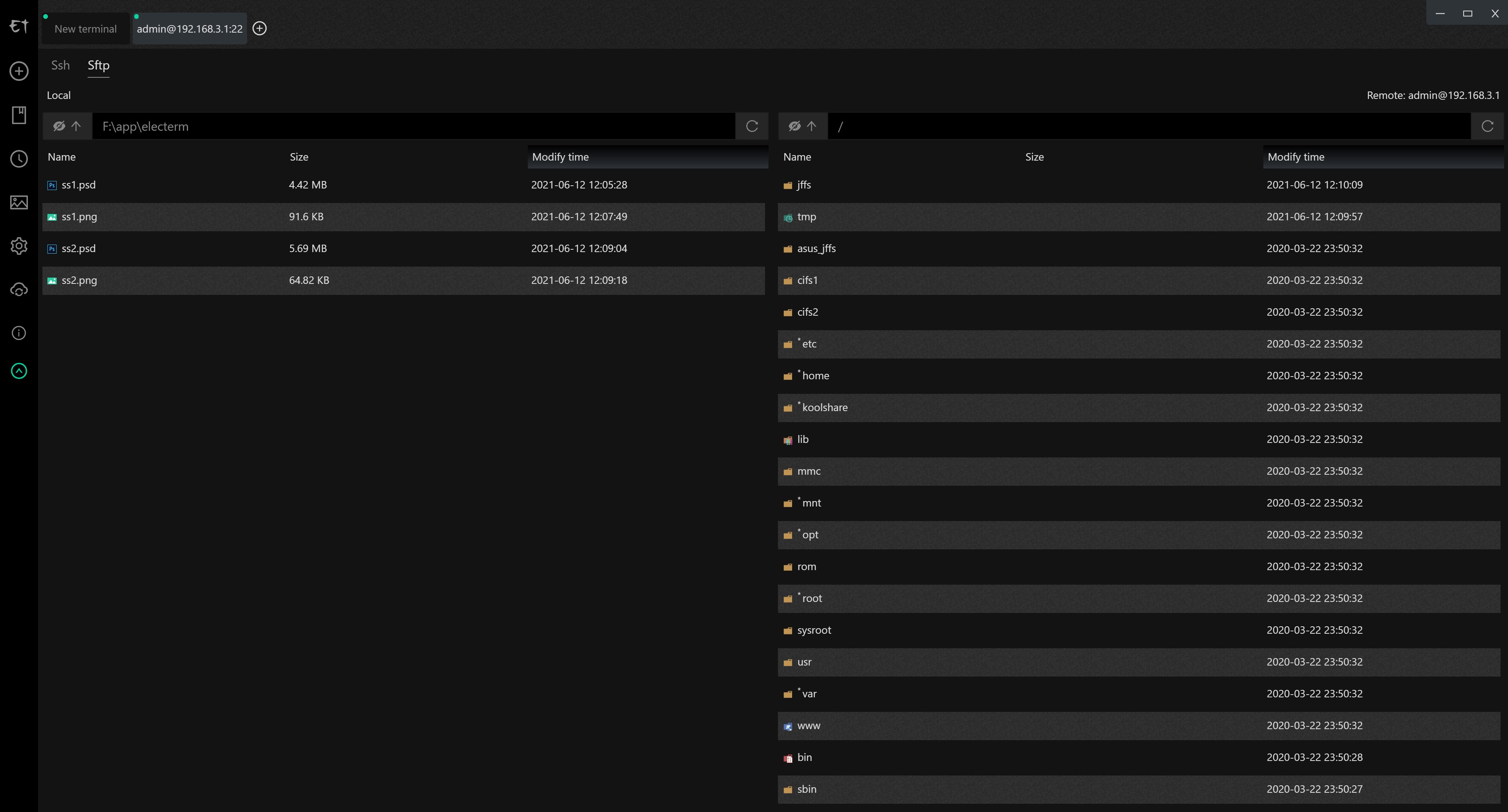 When connected to a ssh server, it will automaticly create a sftp session for user to transfer files.