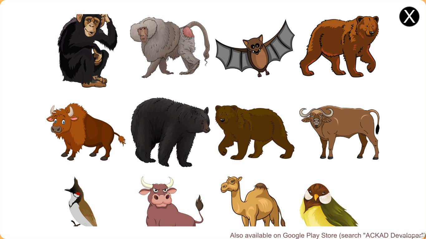 100 animals and birds\’ pictures.More than 800 pieces of pictures to play.Animals and Bird beautiful sound.Free to play with any picture.Simple drag & drop puzzle game.
