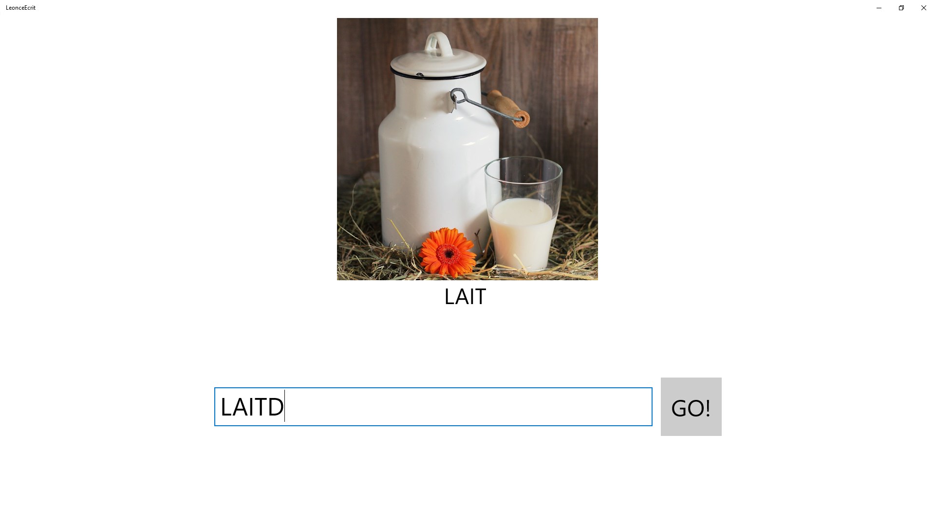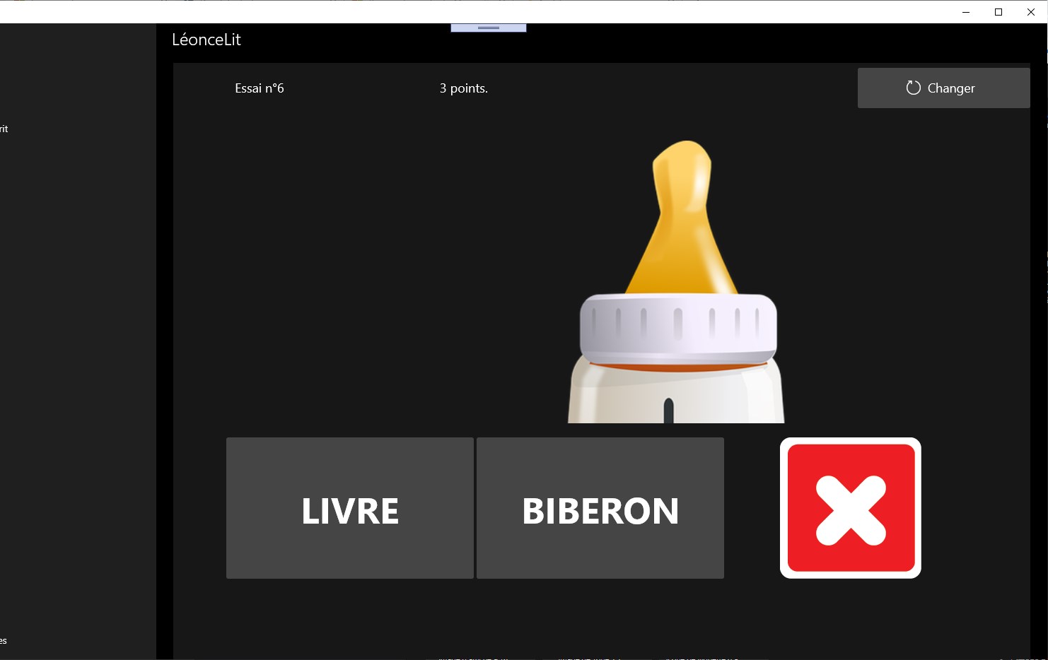 LeonceEcrit est un petit jeu d'écriture à destination d'enfants handicapés, en particulier ma fille, qui a des difficultés en motricité fine, et une vue déficiente.