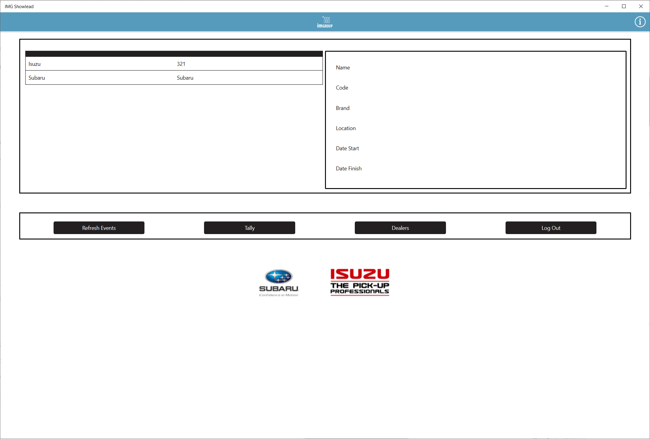 IM Group Showlead application. This Application is used to capture end user contact information for Isuzu and Subaru when collected at car shows and dealer events. For use by representatives of IMGroup only.