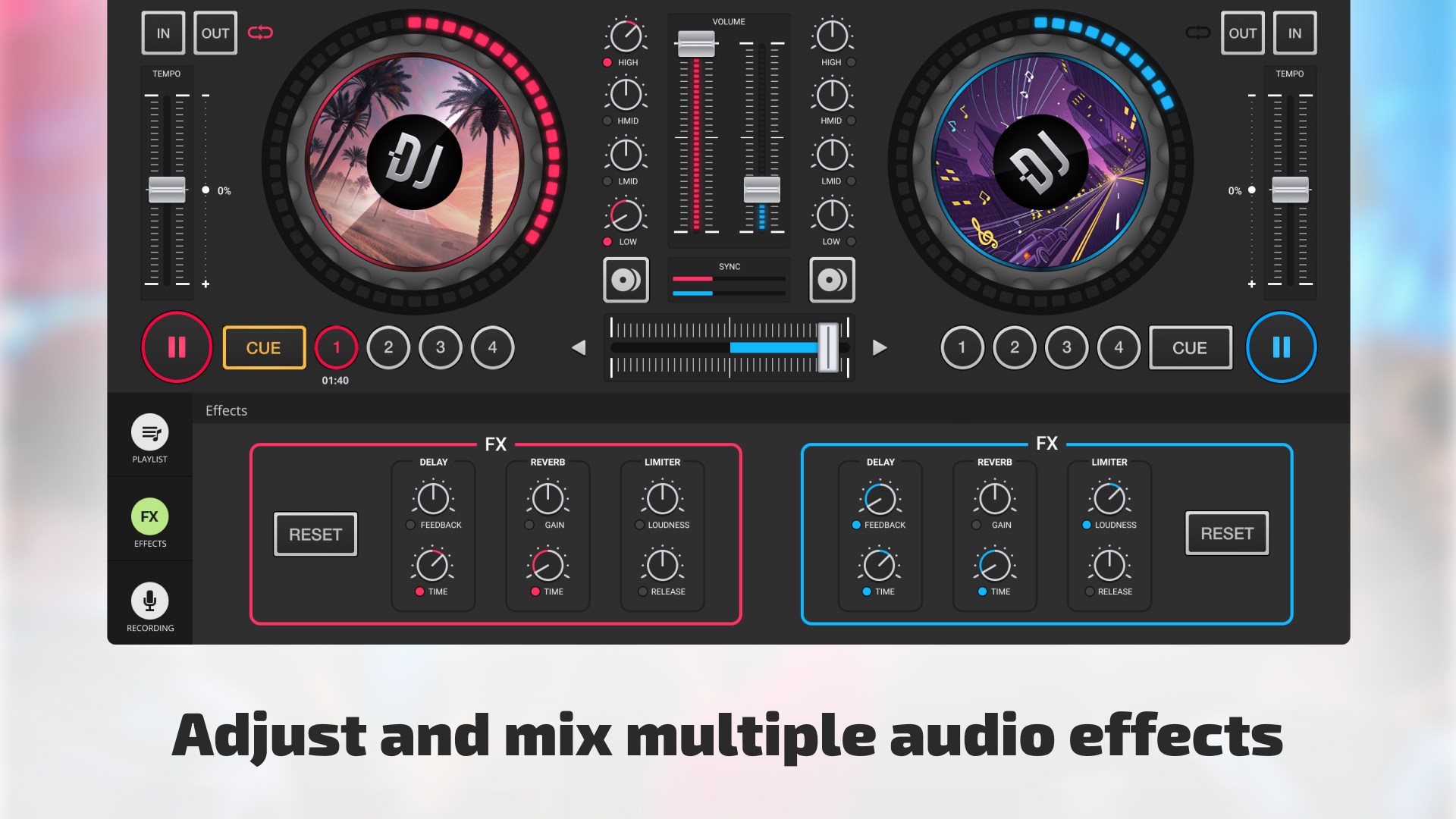 Explore music making with DJ Station - a DJ software that will allow you easily mix music, set loops and amplify different unique audio effects.