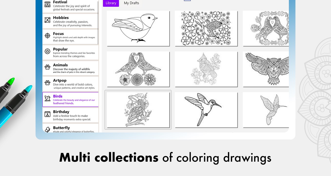 Discover coloring pages from diverse themes to suit every mood and interest,