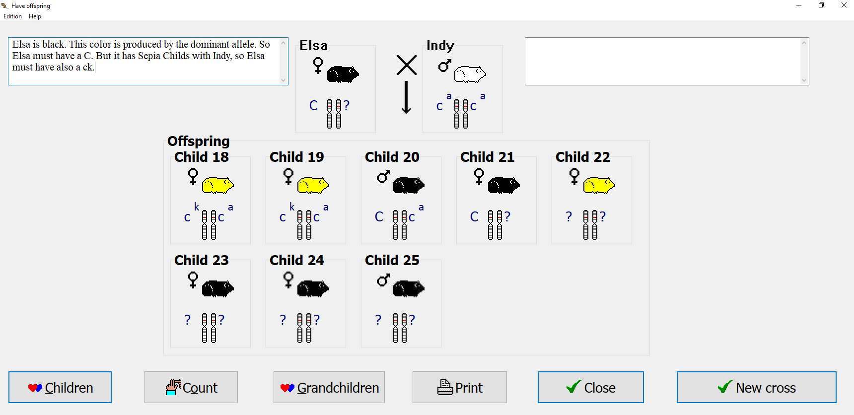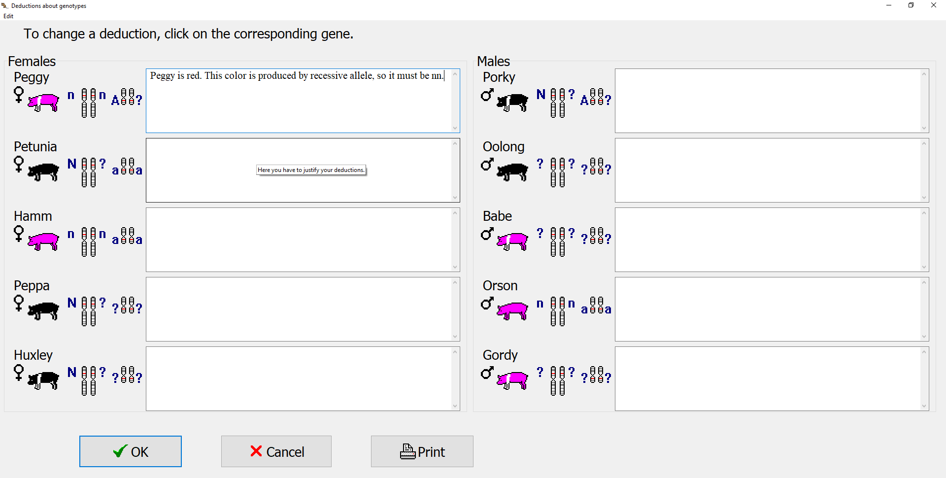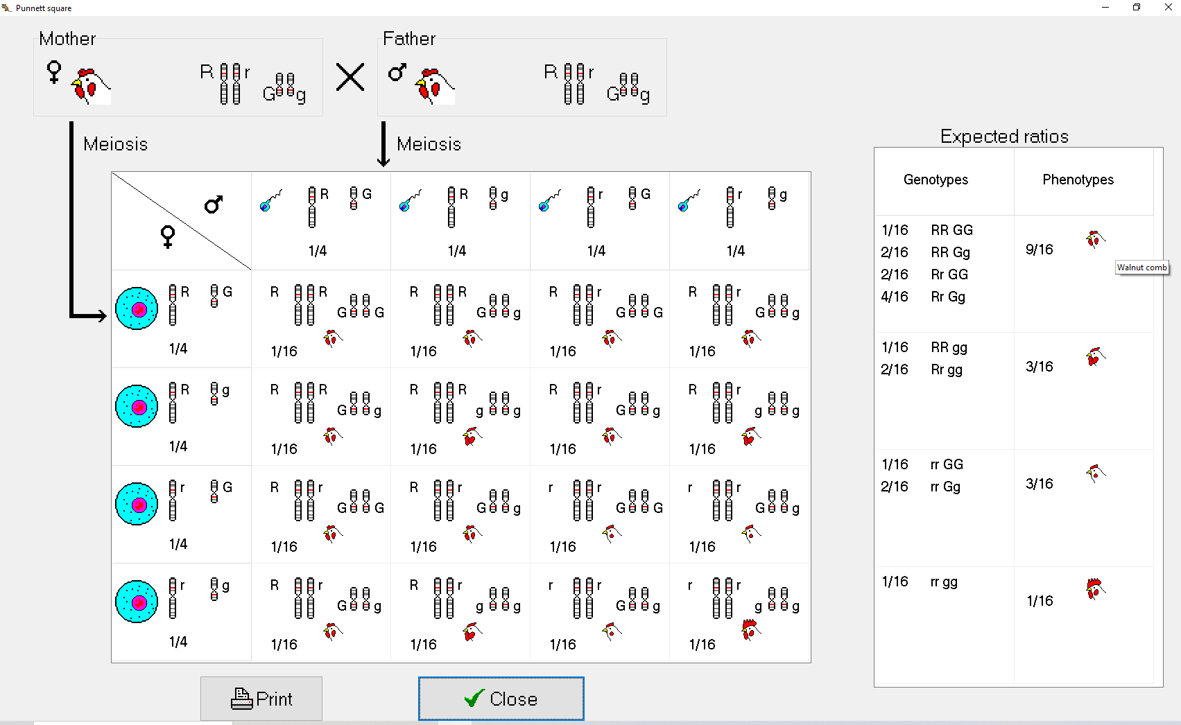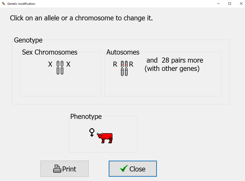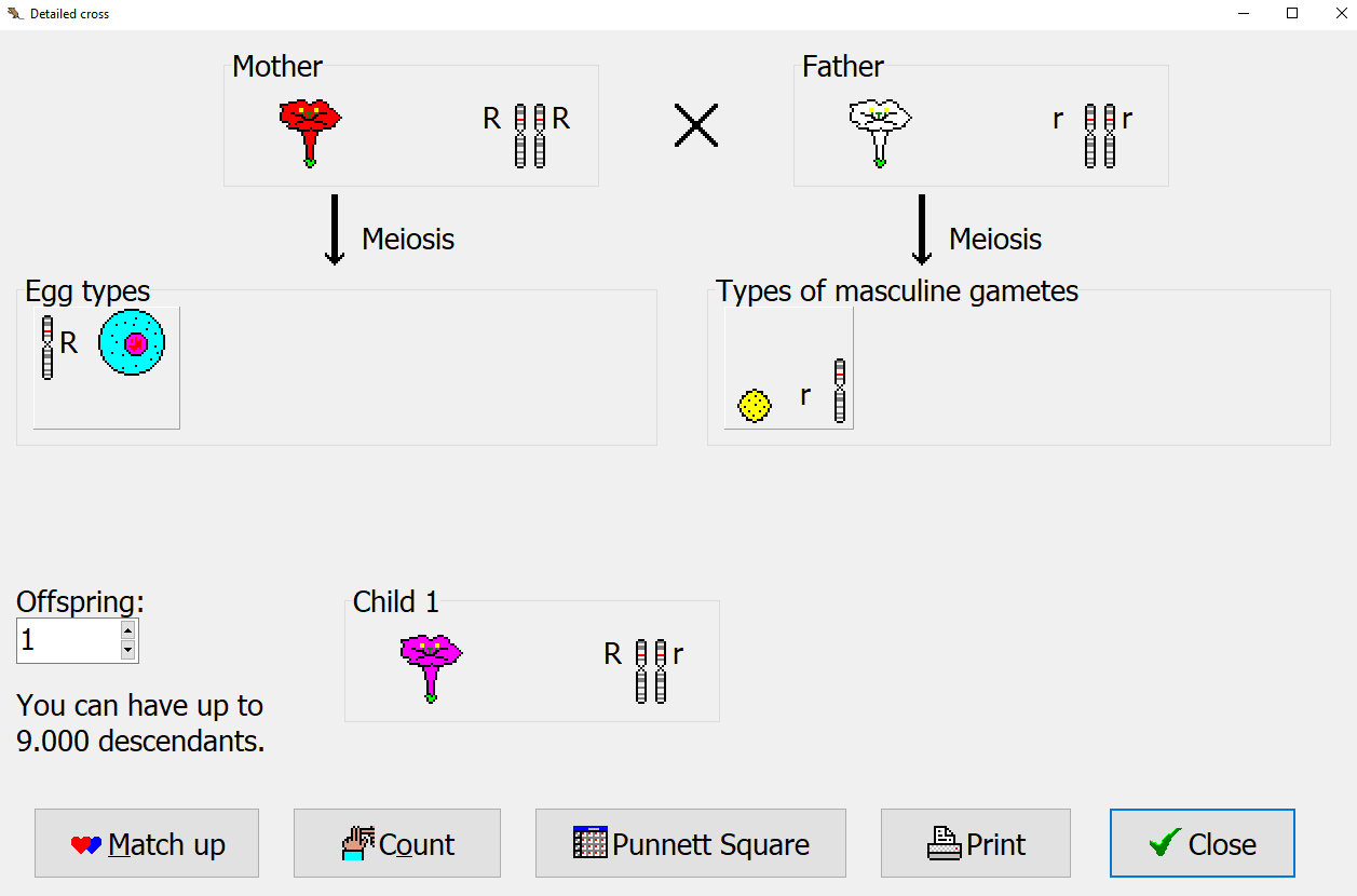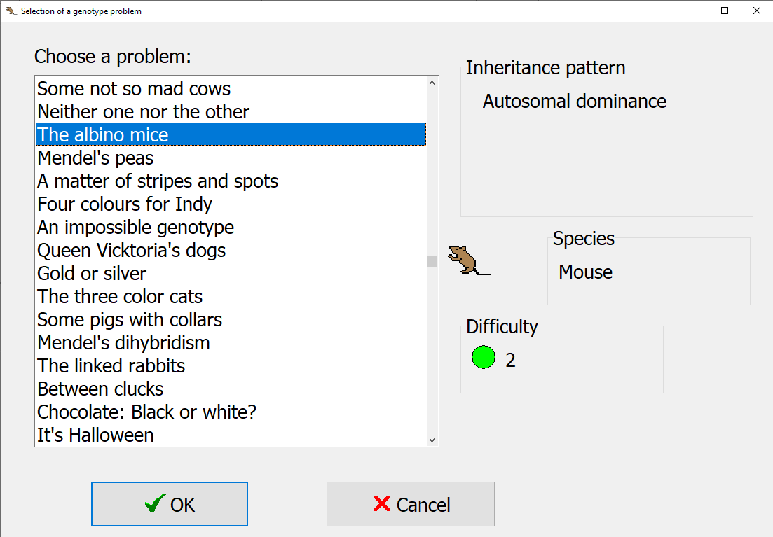 A microworld of Mendelian genetics. Genetics problems in context, in which you can make hypotheses, plan and make crosses and present the conclusions. It considers the main inheritance patterns: autosomal dominance (monohybridism), intermediate inheritance, codominance, multiple alleles, sex-linkage, inheritance of two independent characters (dihybridism), linked genes, gene interaction...