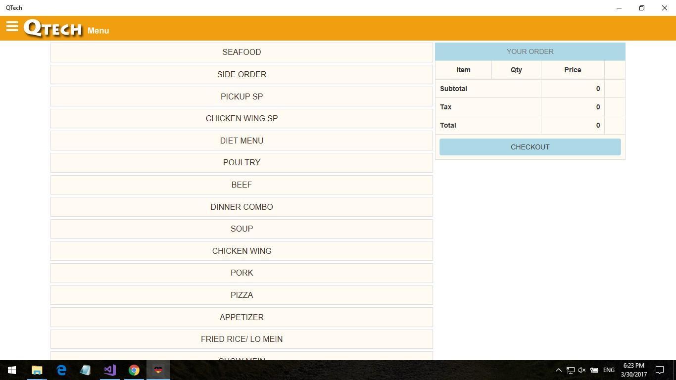 Order menu application for customers