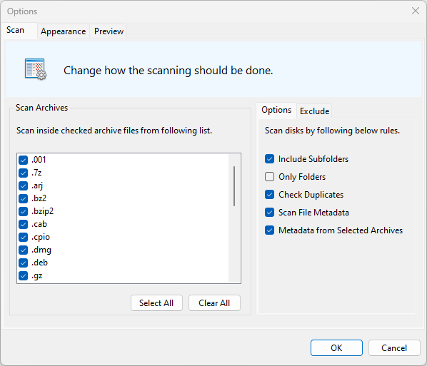 - Added ability to exclude certain file and folders from scan.