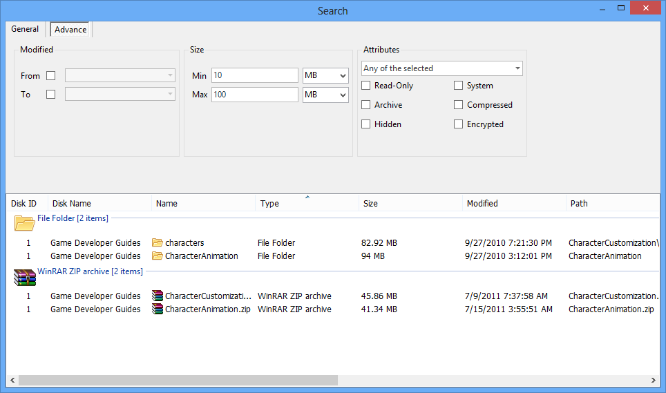 - Catalog files and folder under archives (zip, rar, 7z, iso, tar, vhd and many others) so you don't have to remember which archive has the file, just compress the data to save the disk space.