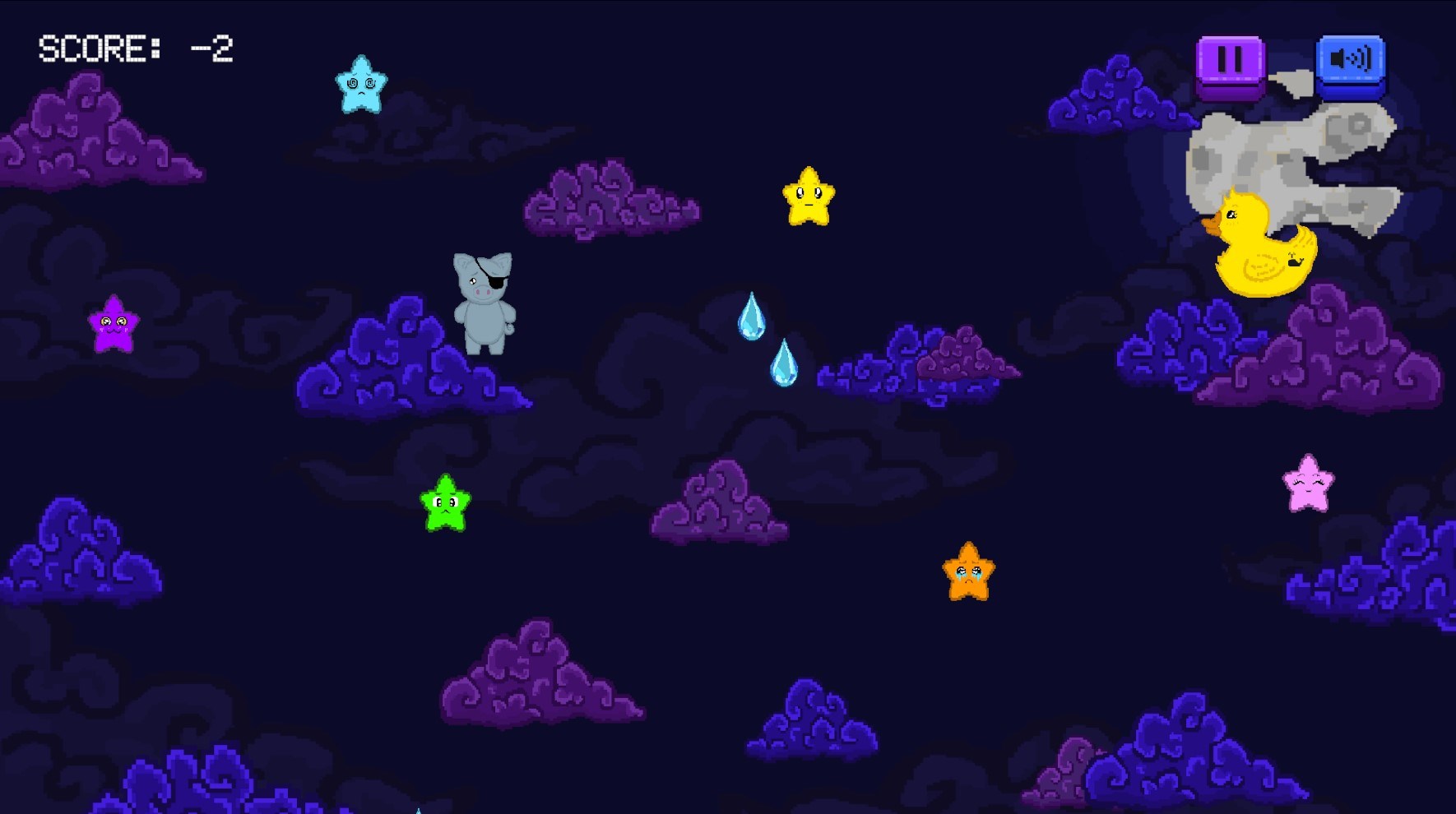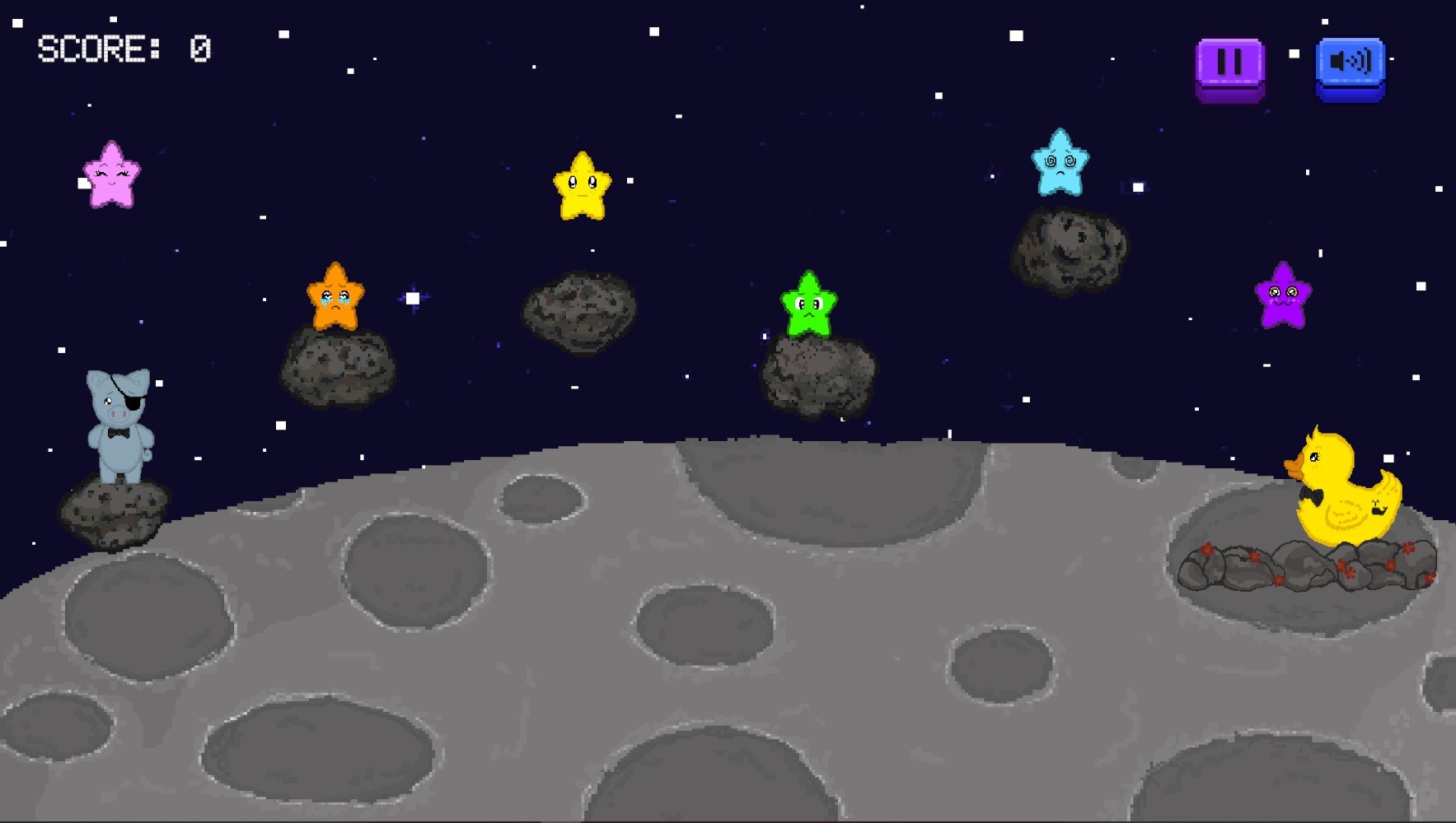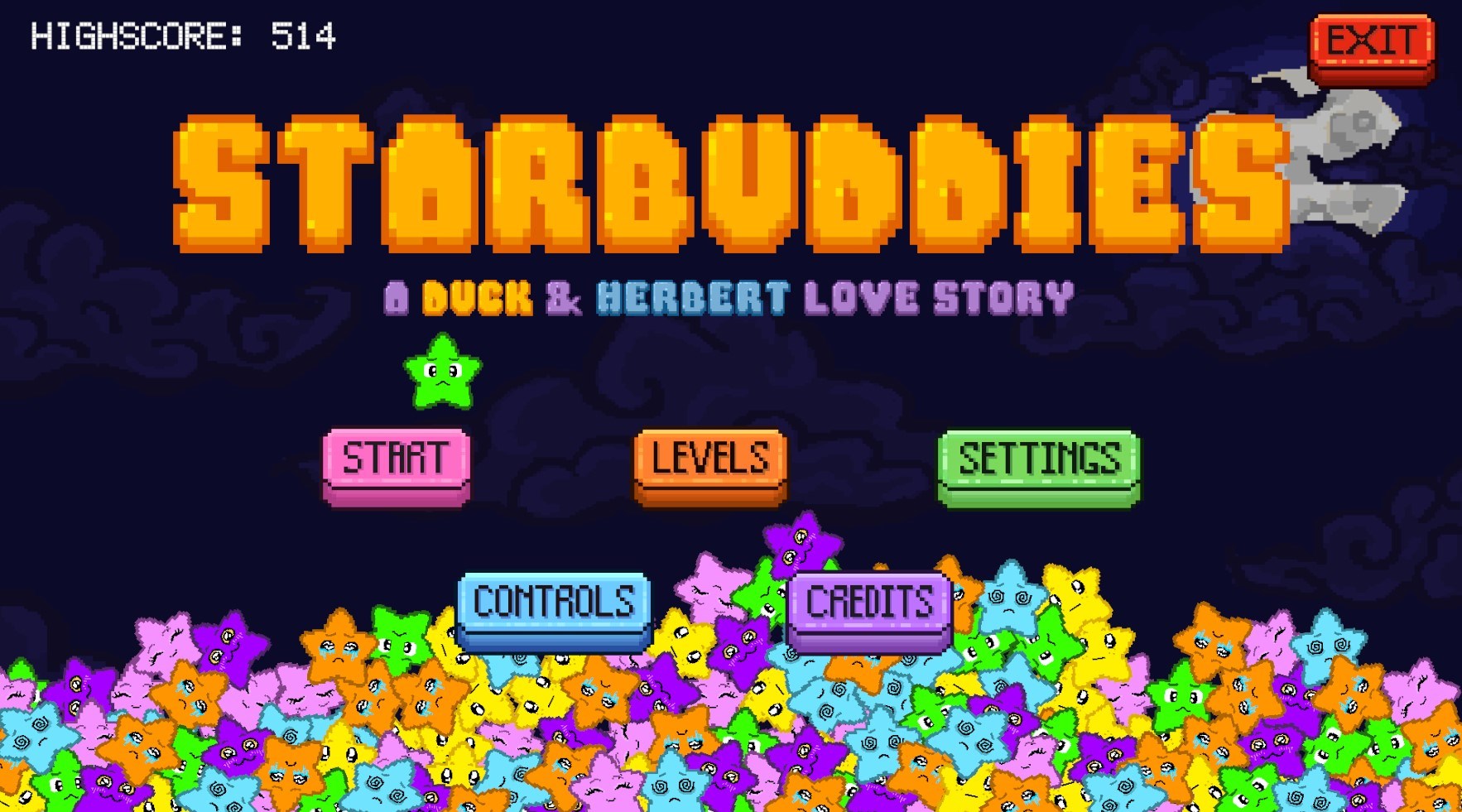 StarBuddies: A Duck & Herbert Love Story, is a story based, 2D, pixel game, that follows the protagonist Herbert, a pale blue pig with an eyepatch, as he finds love with a Duck named Duck. In this love story Herbert is faced with challenges to get to, and stay with, his love.