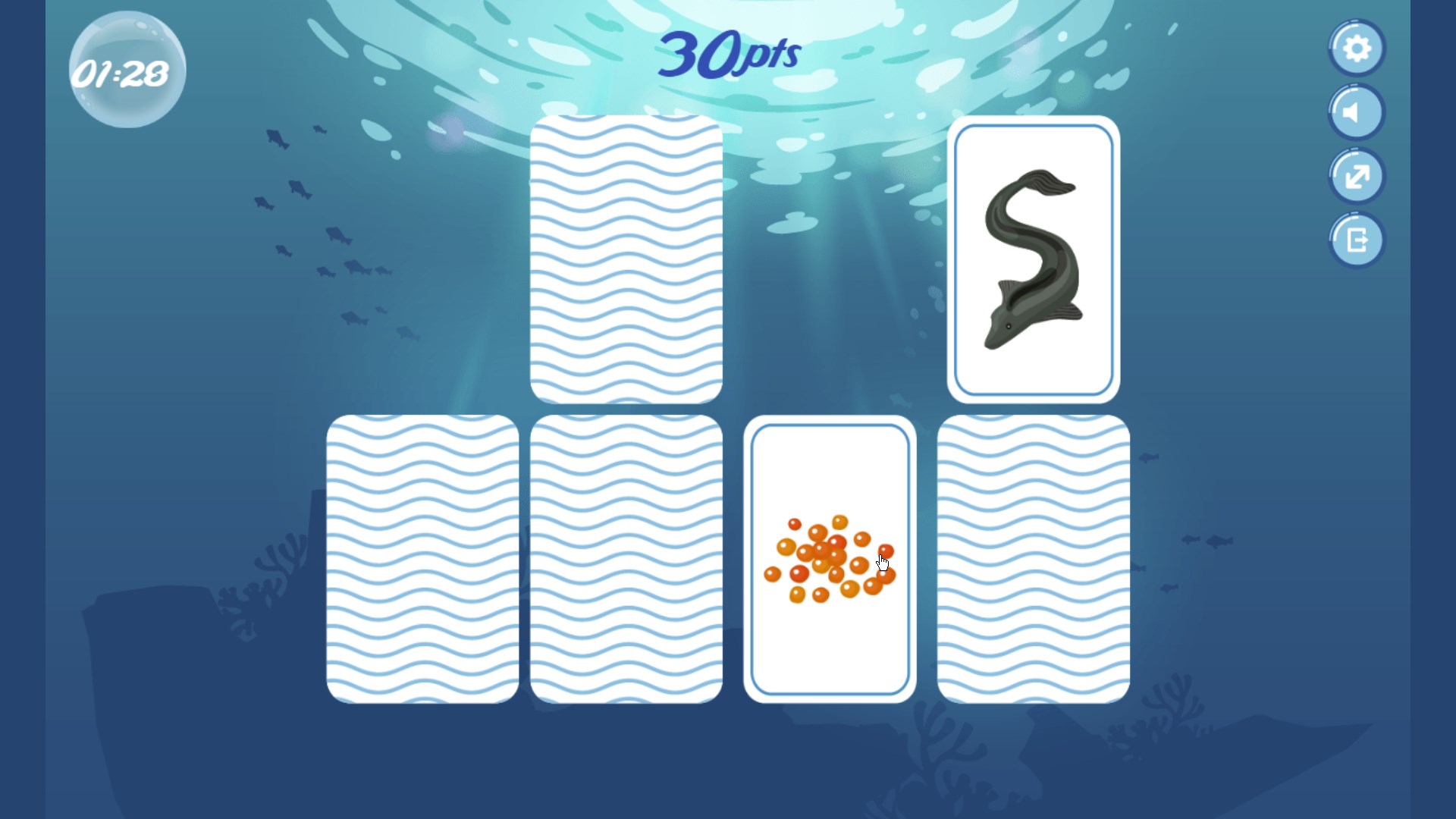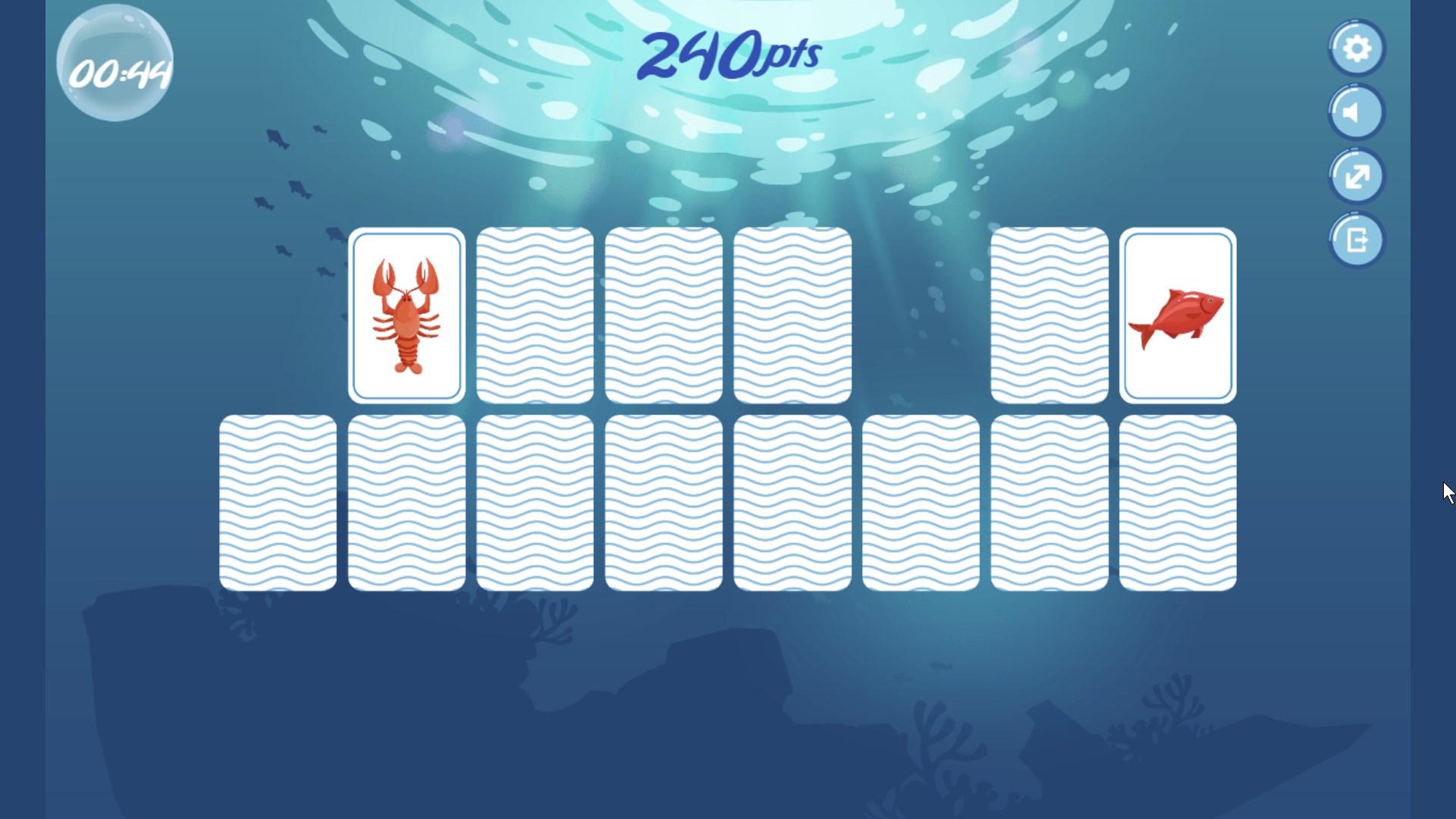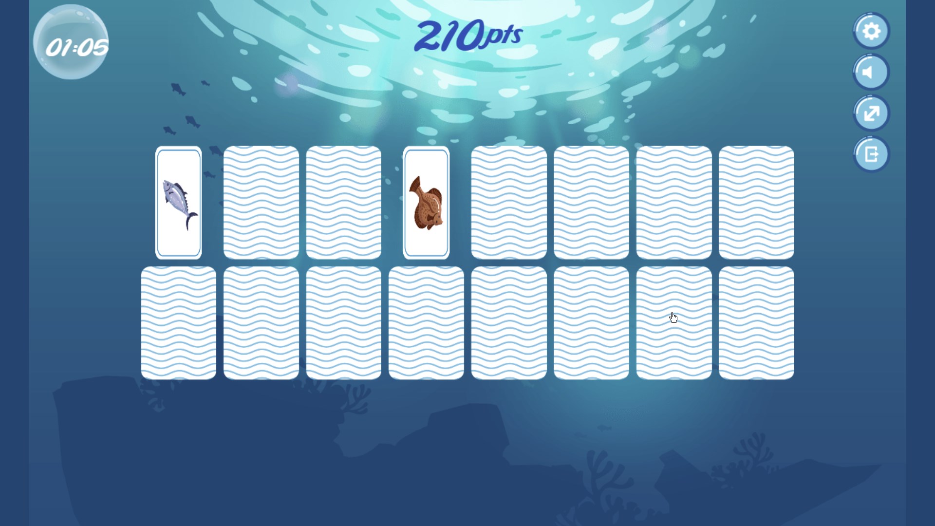 Your goal is to match sets of two cards with the same marine specie. The more matches you have the higher the score you achieve.
