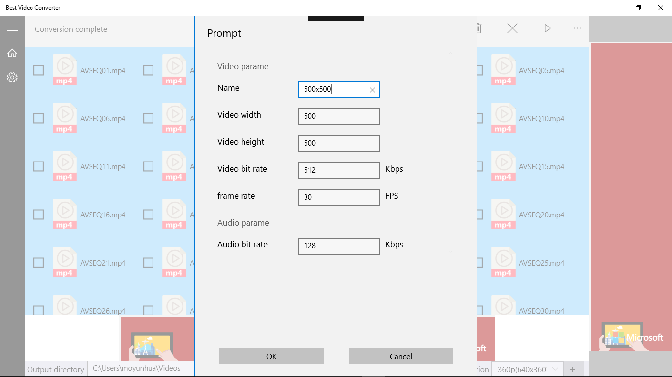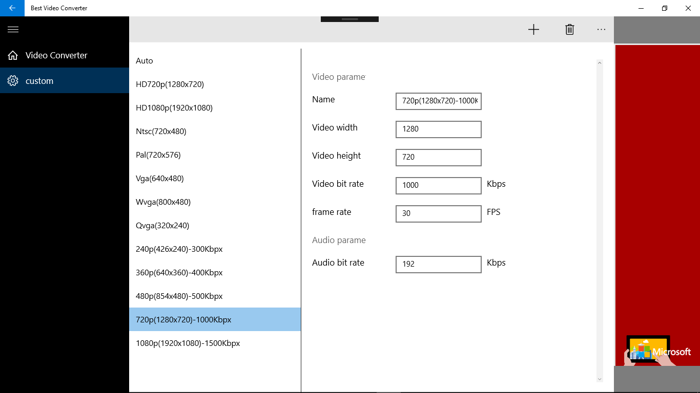Full custom conversion format: You can completely customize the size, bit rate, frame rate and other parameters of the target video.