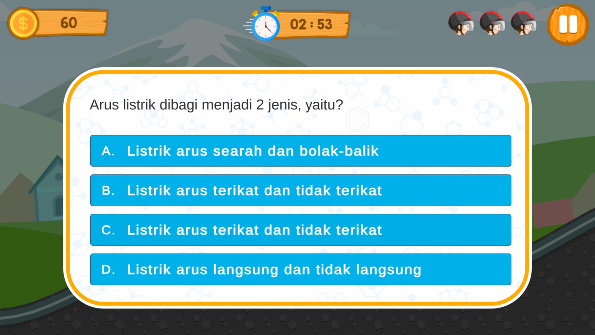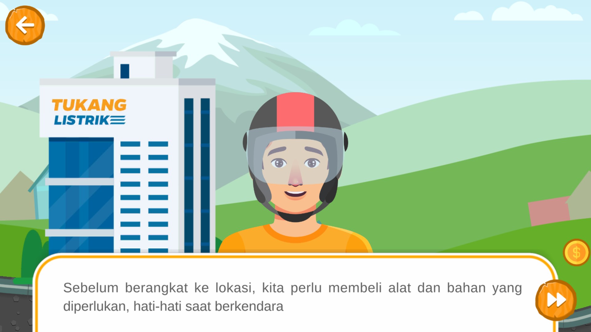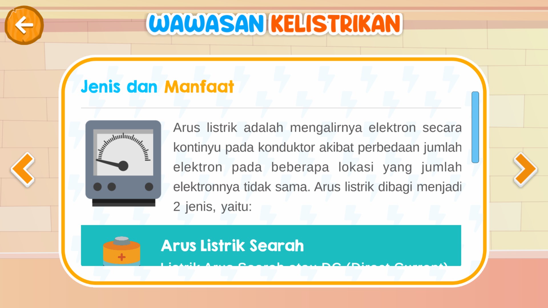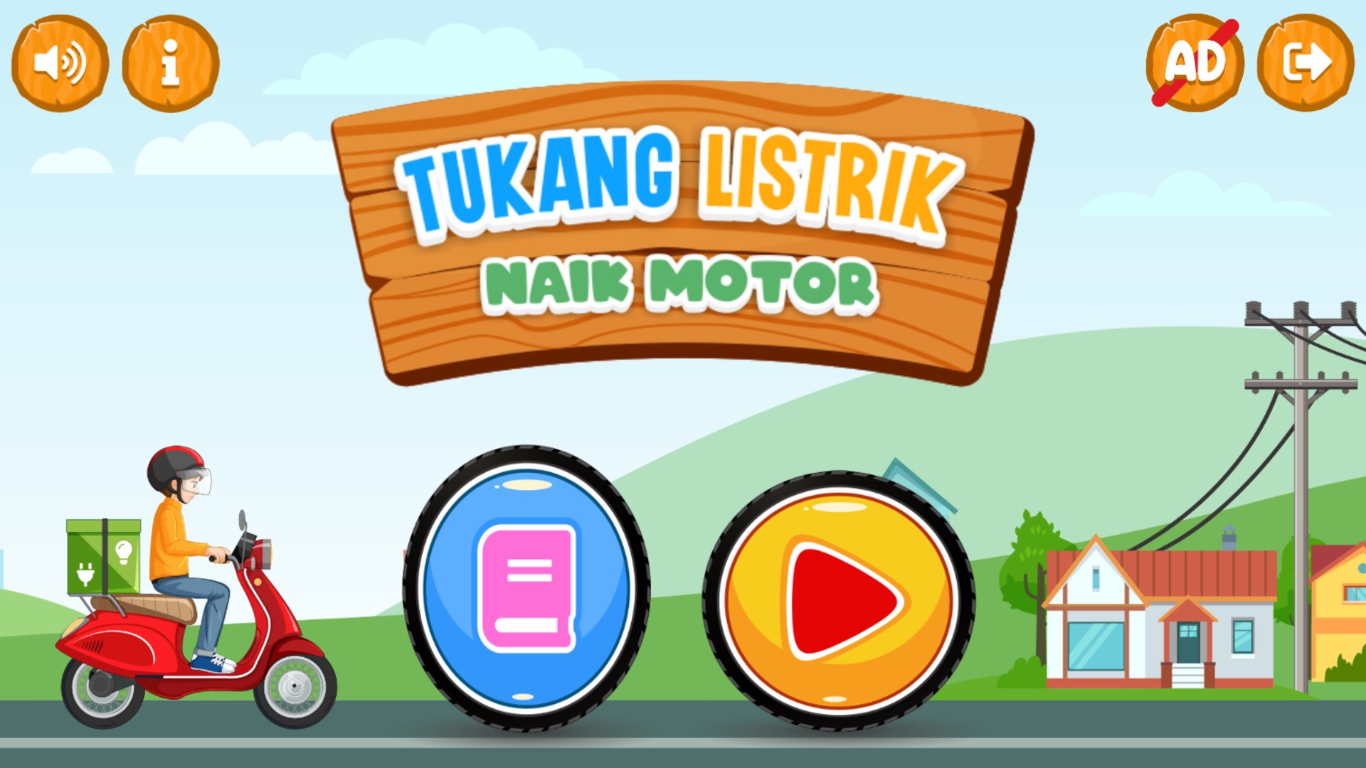 Kelistrikan dan Instalasi Listrik Rumah Tangga Aplikasi ini berisi materi wawasan kelistrikan dasar dan materi dasar instalasi listrik rumah tangga. Tersedia juga menu permainan edukasi dengan tema tukang listrik yang berkunjung kerumah-rumah menggunakan motor untuk memperbaiki kelistrikan.