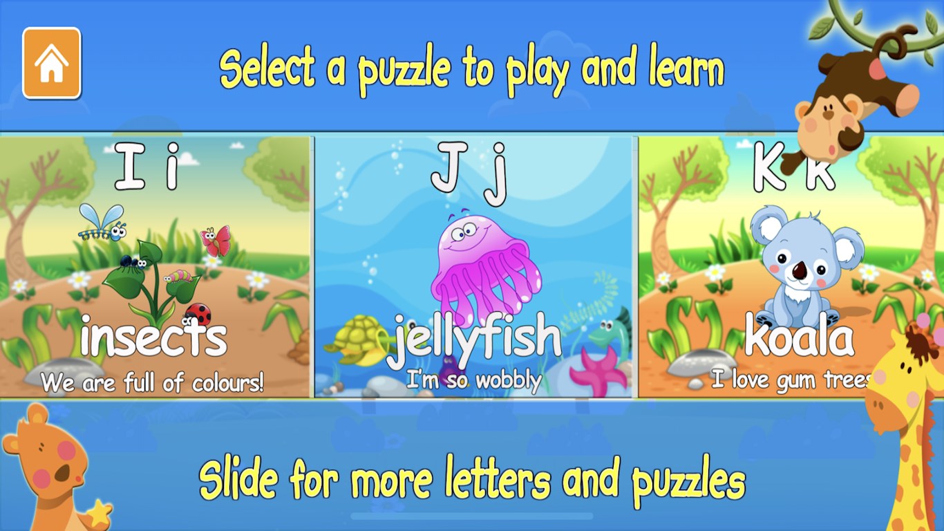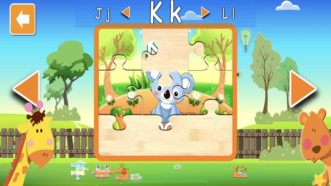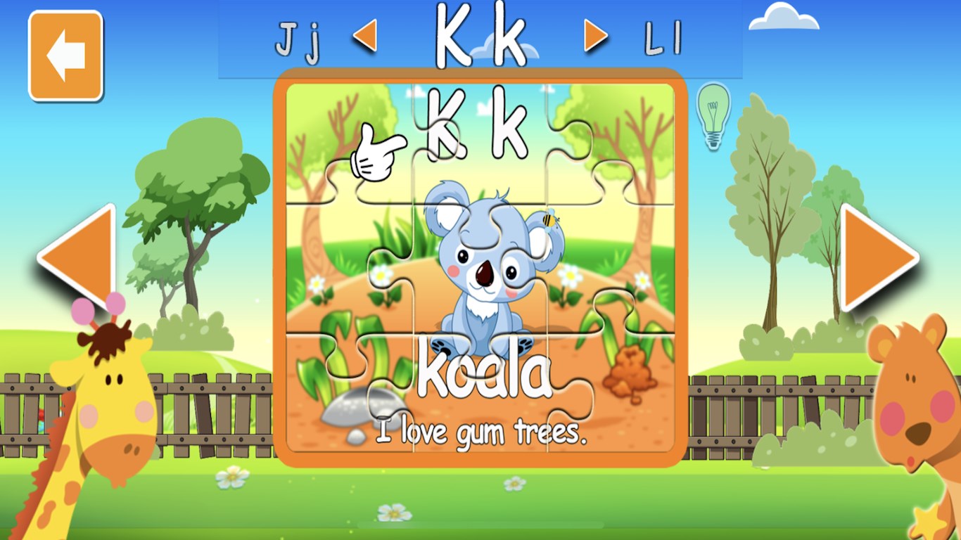 Complete alphabet set.26 colourfully illustrated puzzles to assemble Help children associate words with pictures Hint button for extra help in solving the puzzleHelps hand and eye co-ordinationHelps logical thinking. Easy to use interface