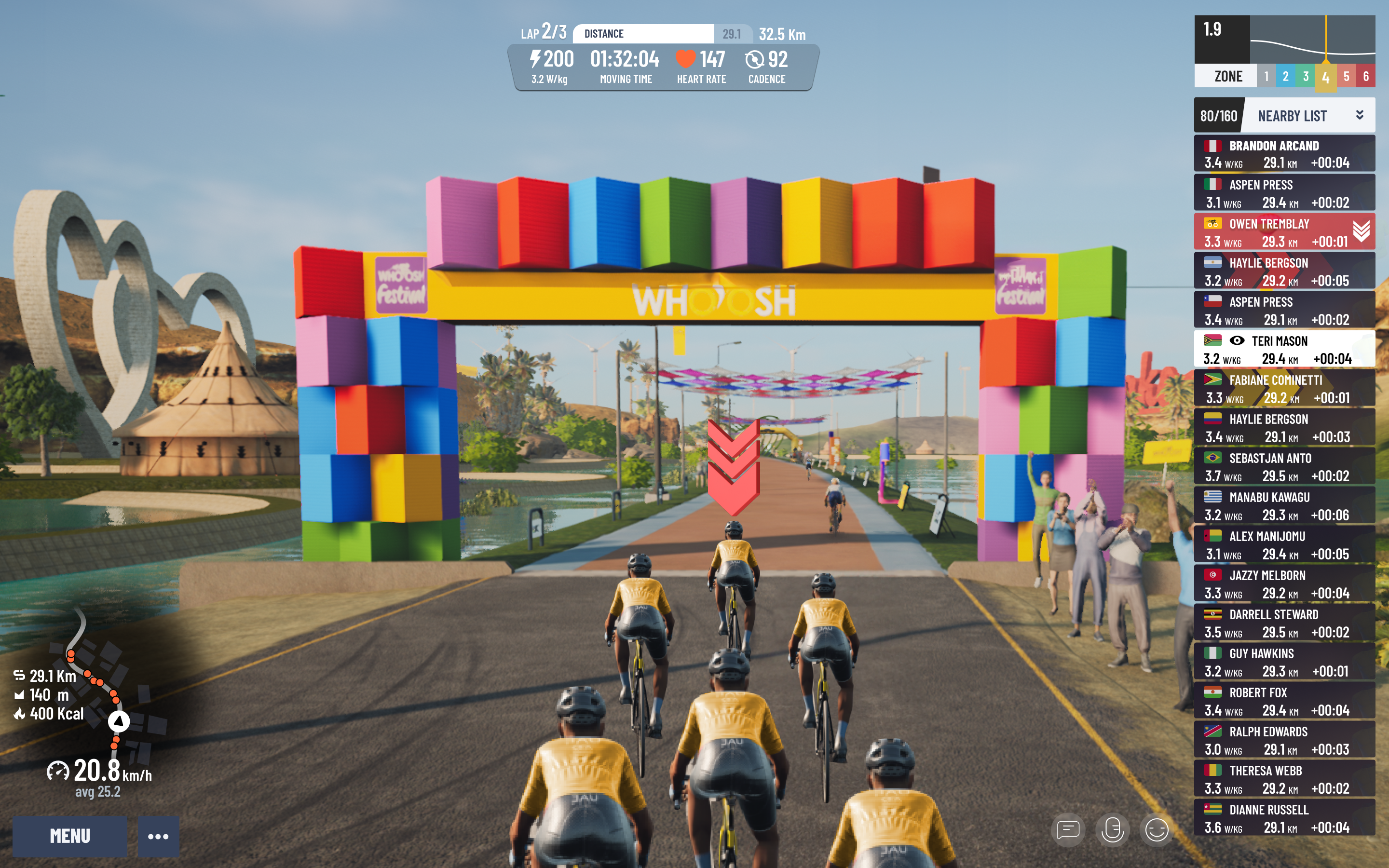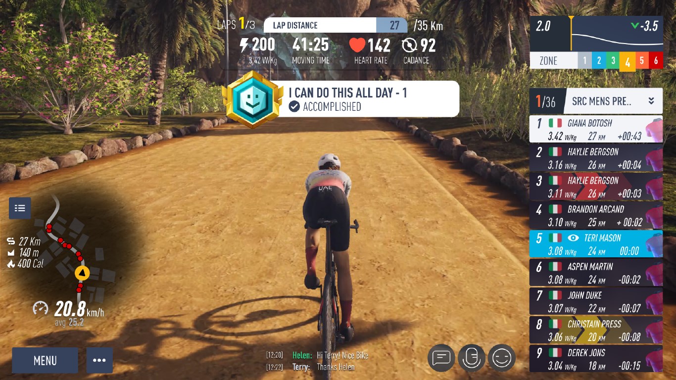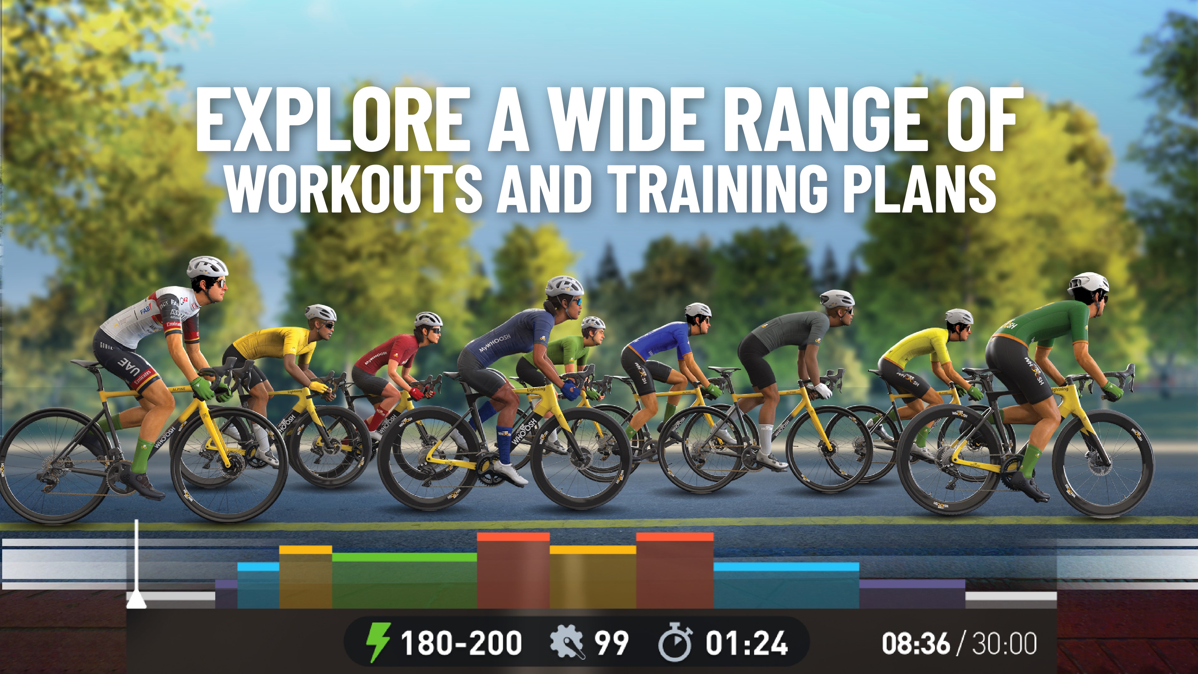 Explore the beautiful worlds from Abu Dhabi, Dubai, Saudi Arabia, and Bahrain that MyWhoosh has to offer. From challenging climbs to fast flats there is something for everyone.Train with 720+ Workouts and world-class plans designed by world-class coaches to help you crush your cycling goals and take your fitness to the next level.Plan all components of your training week: races, social and rides, workouts with a unique calendar feature.Track your progress & analyze your cycling performance with data and unique metrics available during & after your workout.Take part in cycling esports events with some top cash prizes.Never ride alone! Join a vibrant community of cyclists and fitness enthusiastsRide in a range of social rides and daily events targeting different time zones across the world - Make new friends from across the globe while ridingCustomize your avatar with the latest kits, accessories, and bikes, including jerseys from the UAE Team Emirates and UAE Team ADQ