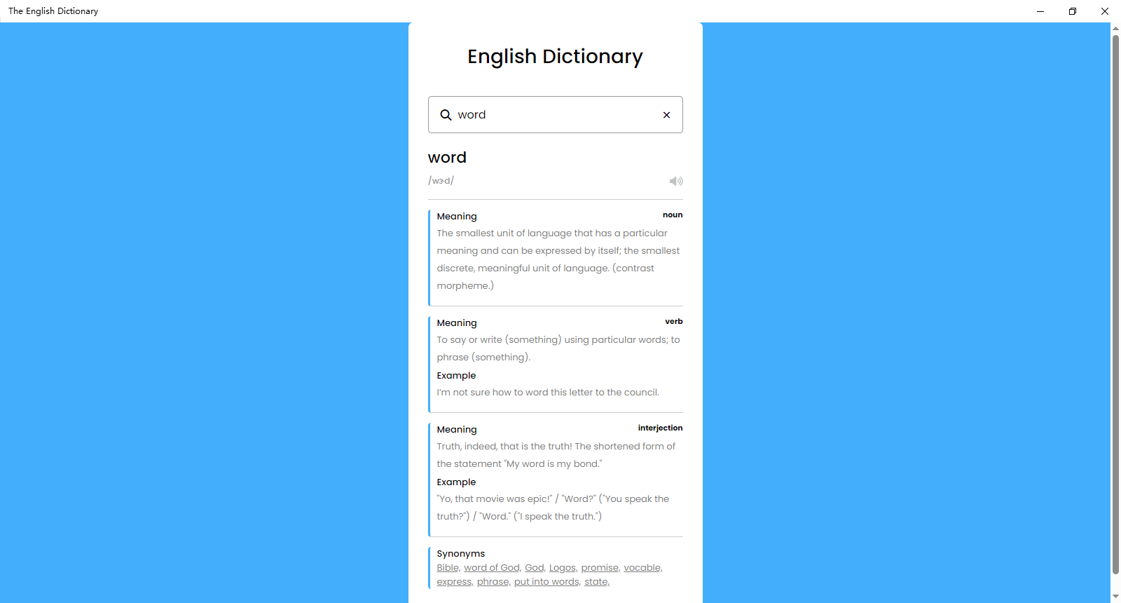 This is a comprehensive tool designed to help learners and enthusiasts of English expand their vocabulary and master its complexities.The Syllable Counter can Count syllables in an English word,sentence, or phrase. The dictionary has been carefully curated to provide clear definitions, example sentences and usage guidance for a wide range of common words and phrases in written and spoken English.
