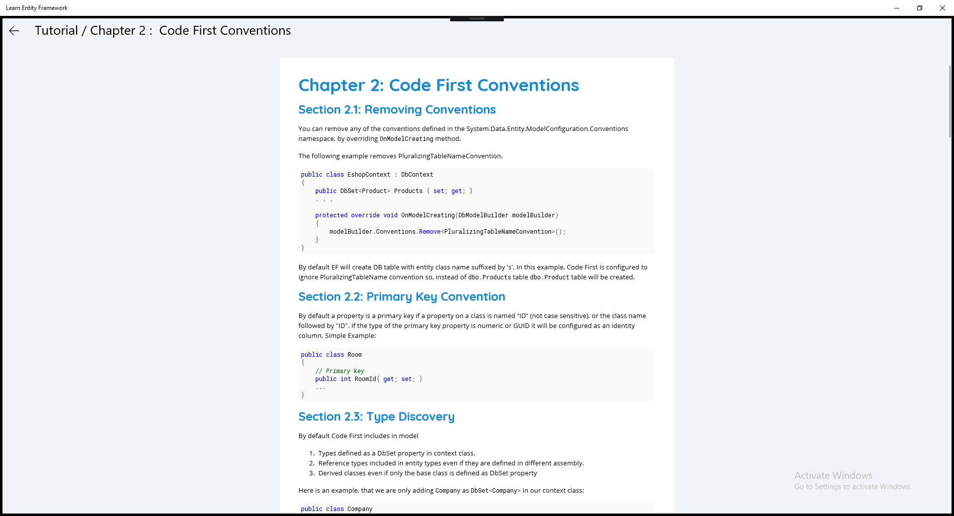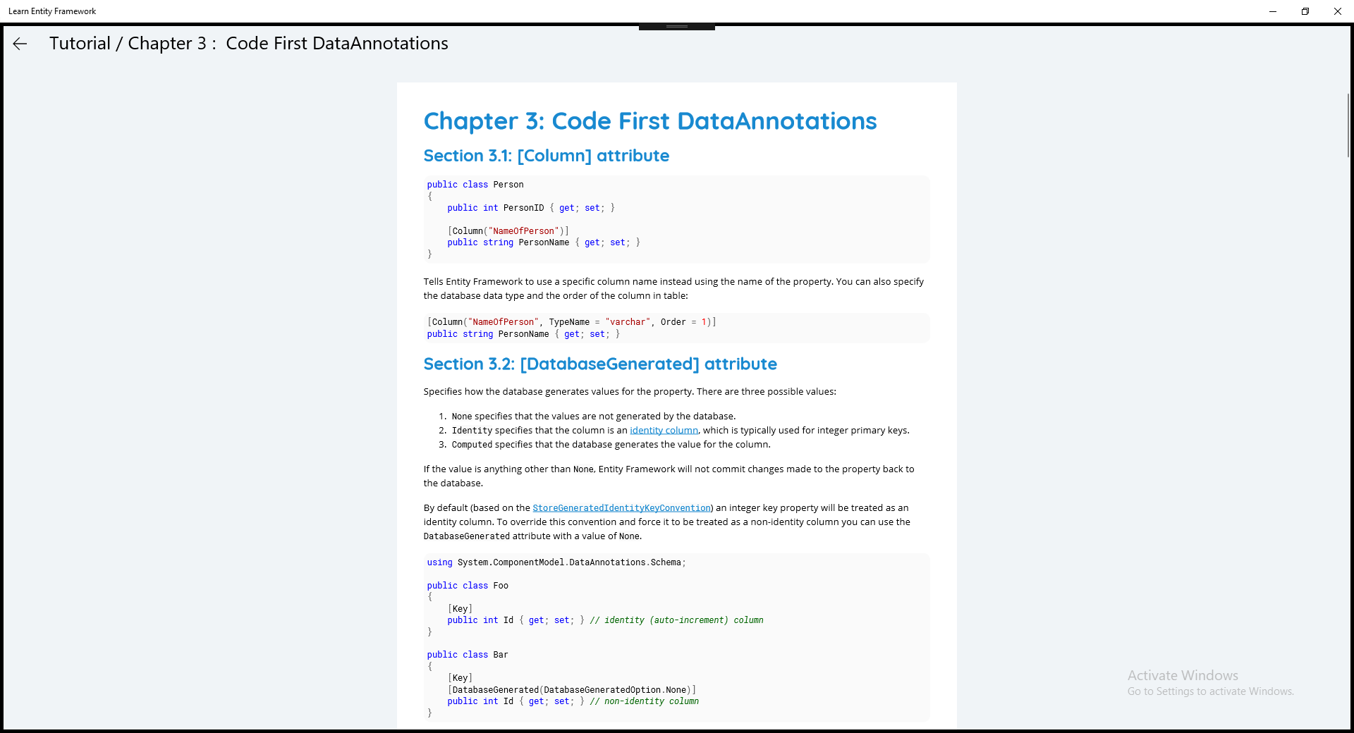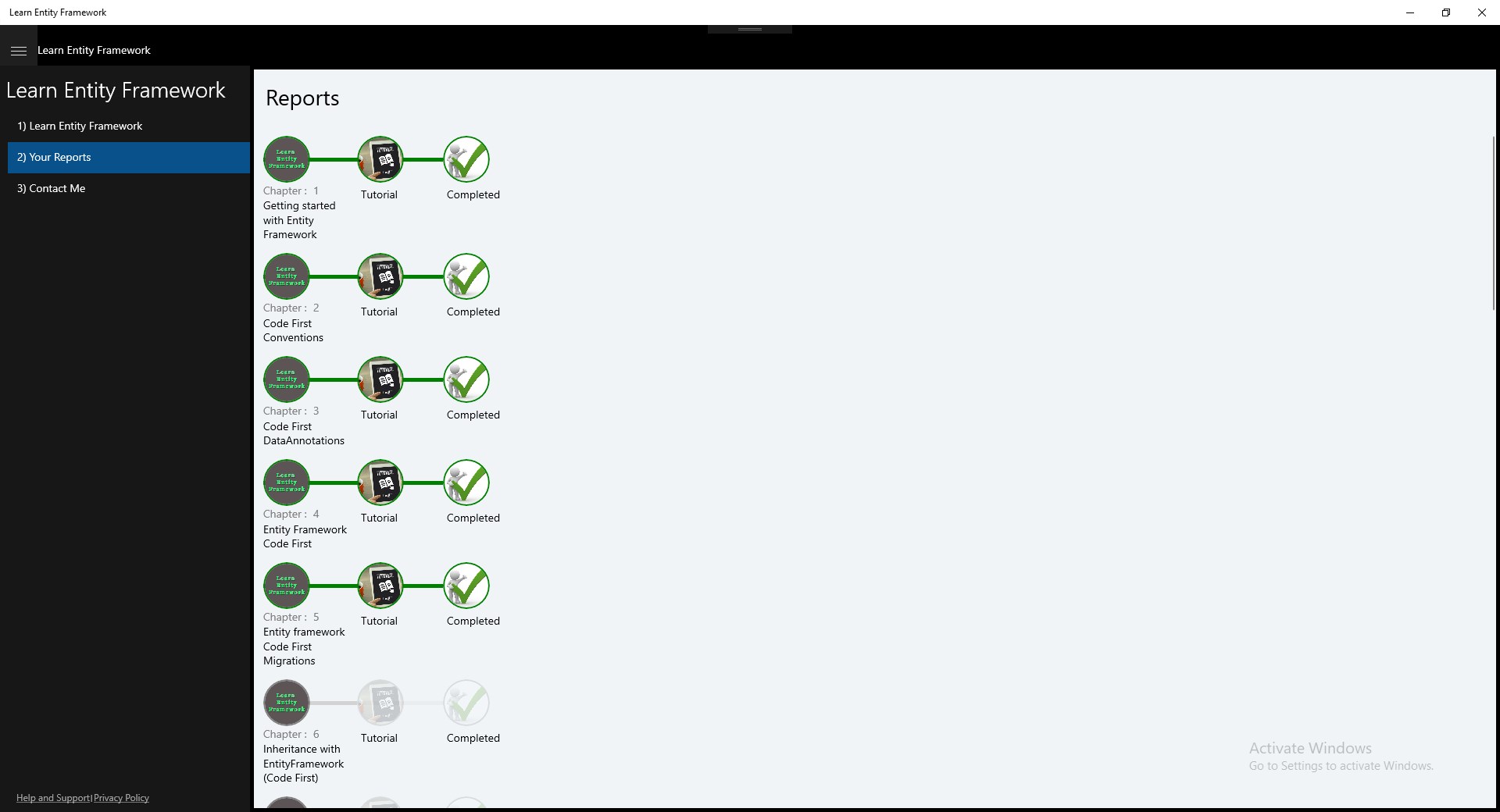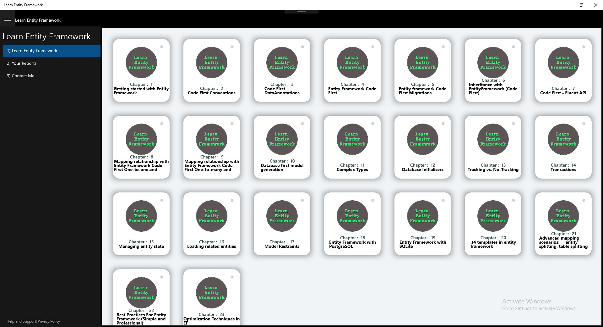 This app contains tutorials and reports for the all who want to Learn Entity Framework.