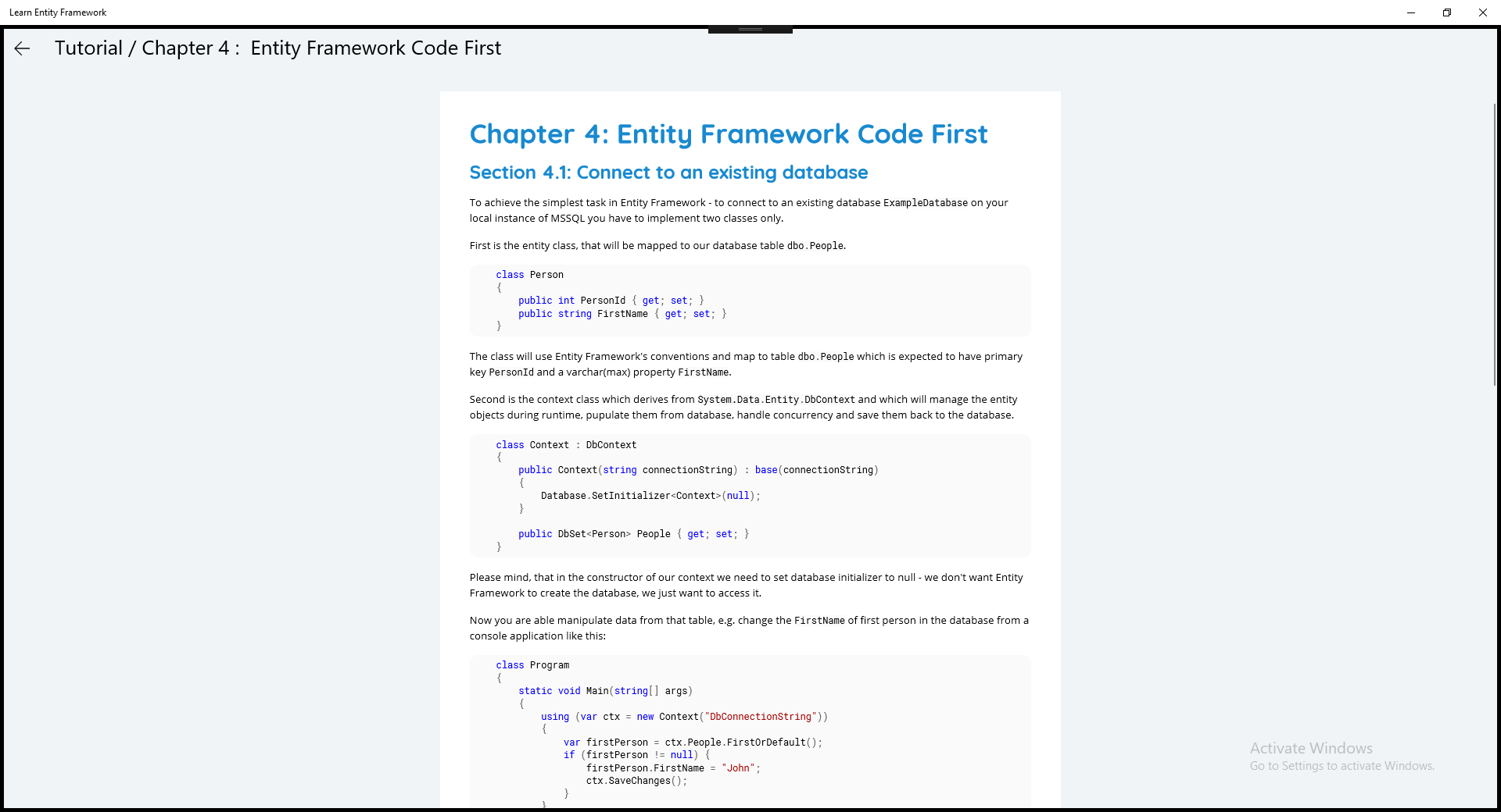 How to download and Install Learn Entity Framework on Windows PC via the NWindows Store