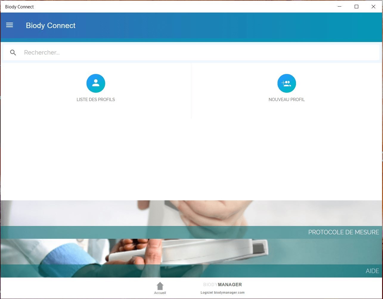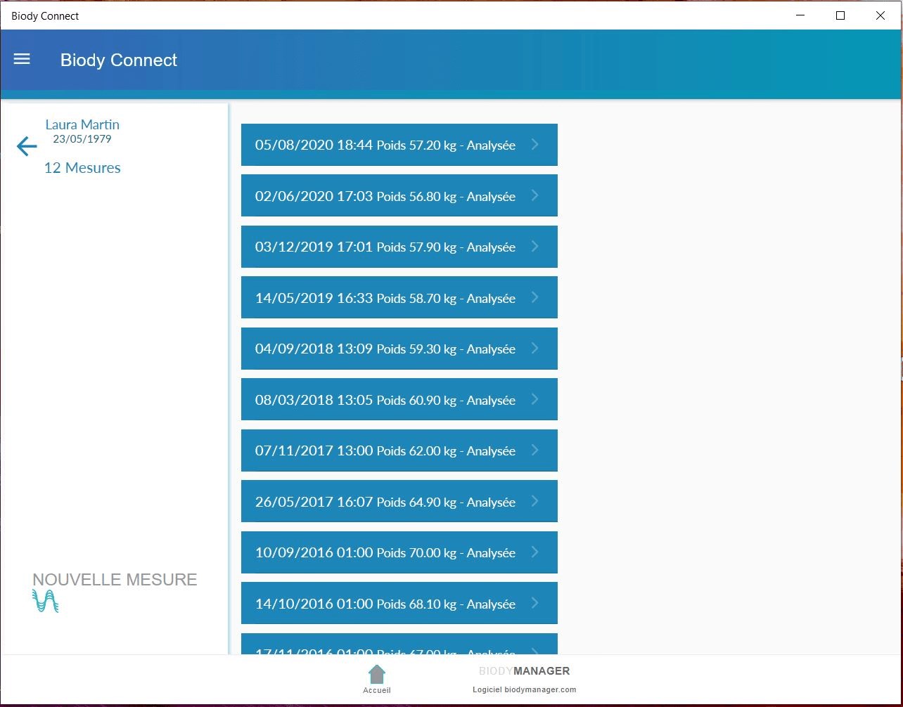 It enables Bluetooth®️ synchronization and consultation of results for Aminogram bio-impedancemetry body composition analysis devices (BIODYXPERTZMII, BIODYLIFEZM and BIODYCOACHZM).