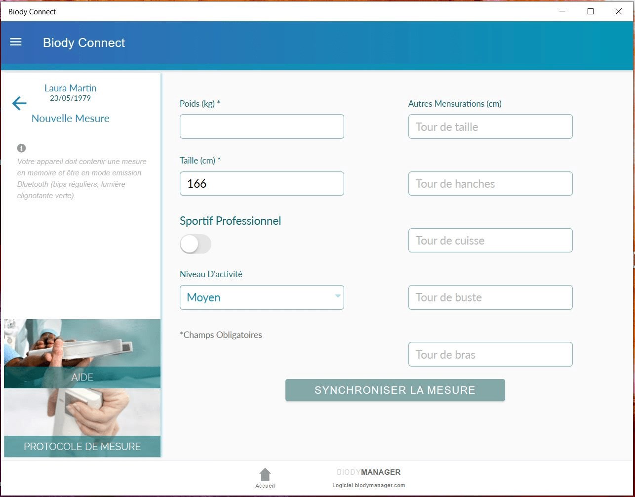 Keywords: BiodyManager, BiodyCoach, ehealth, esante, e-health, bioimpedancemetry, bioelectrical impedance, body composition, fat mass, muscle mass, hydration.