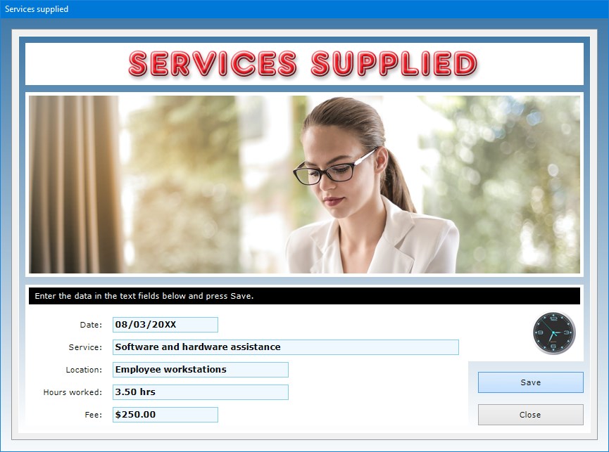 Software to store personal and work data of your employees, keep track of the services they supply and print out ID badges for all of them