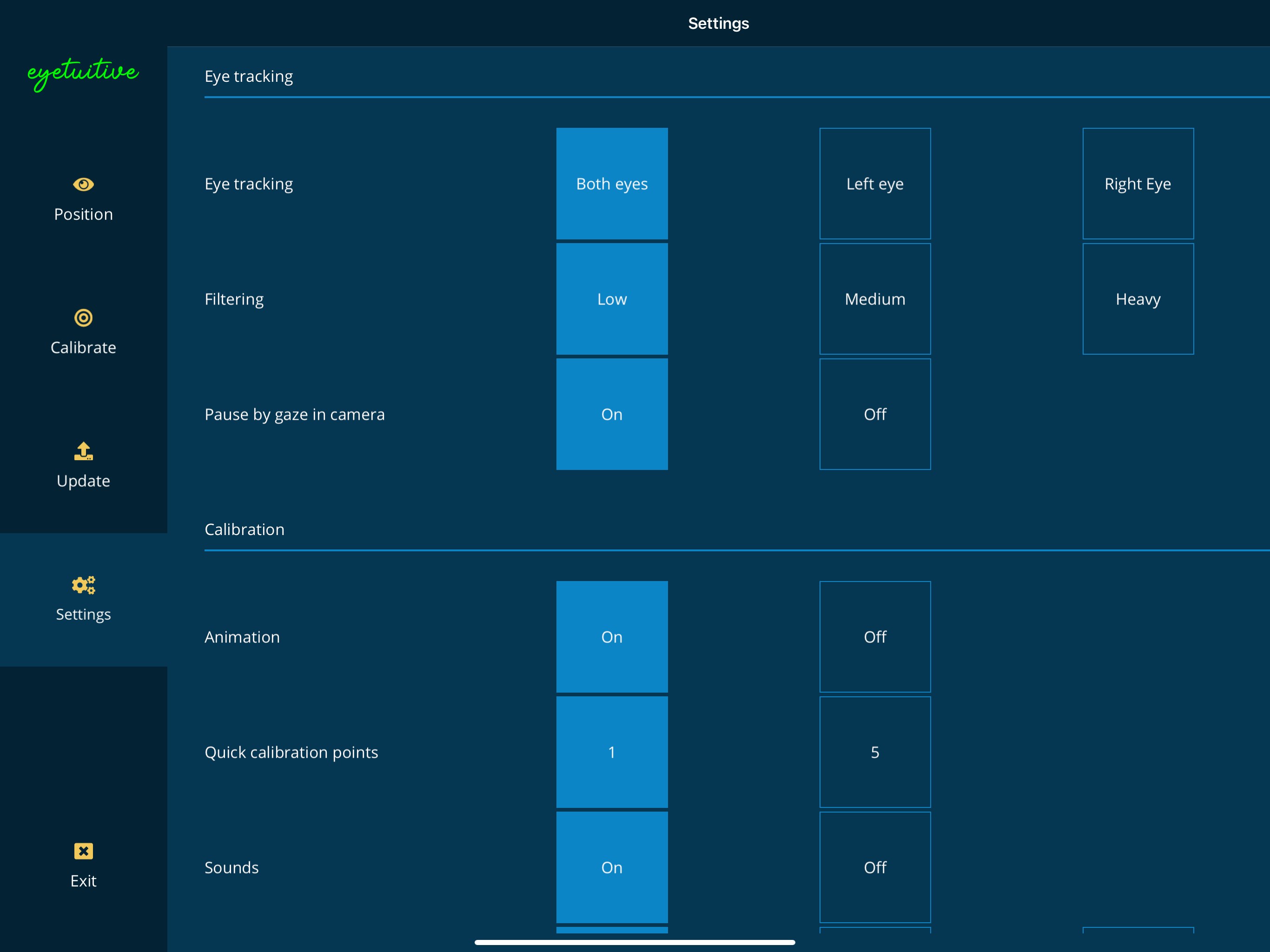 eyetuitive is the companion app for your eyetuitive remote eye tracker developed by GazeFirst. You can easily calibrate and configure your eyetuitive eye tracker and get the best experience for using your tablet just with your eyes!