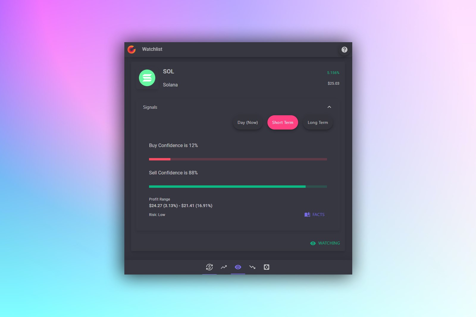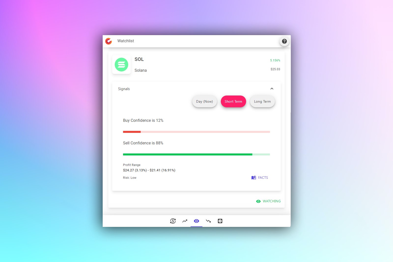 Get AI-powered Buy and Sell Confidence on your favorite crypto coins and stay ahead of the curve. Our confidence system monitors over 100 cryptos.