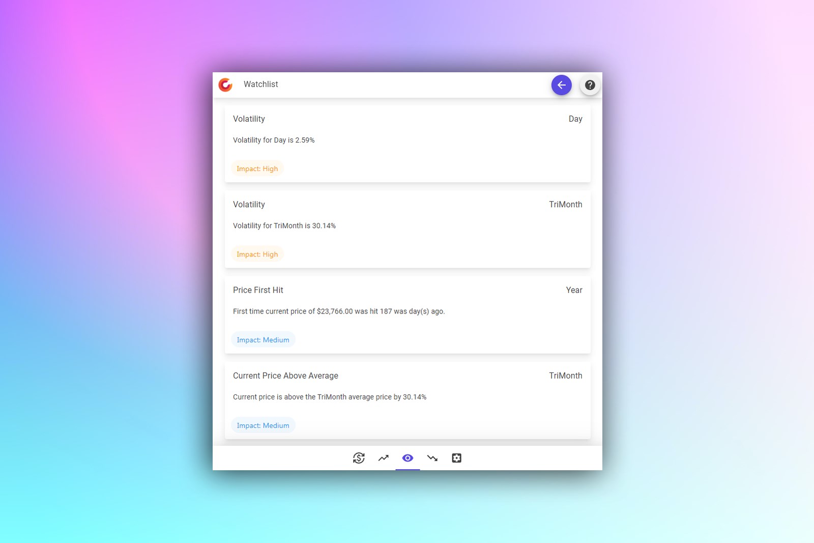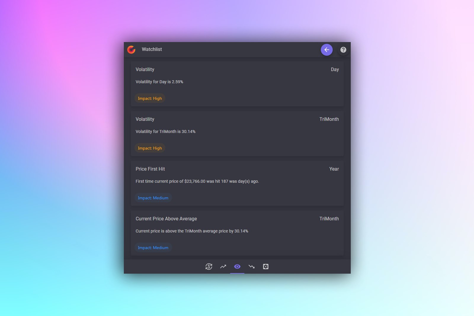 Check Intelligent facts that help you get deeper insights on the current price of a crypto coin.