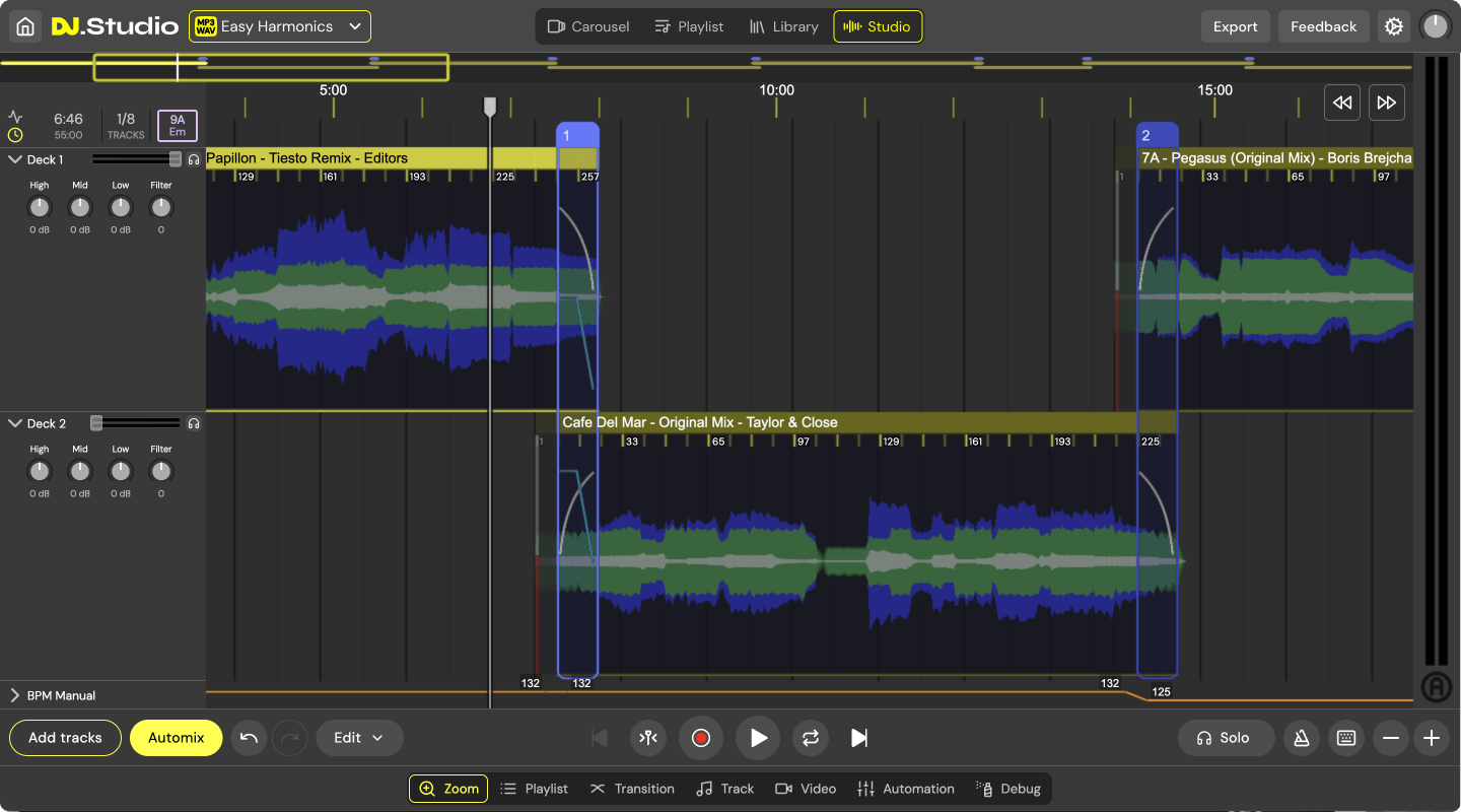 At the core of DJ.Studio is its timeline editor, which provides you precise control over every aspect of your project. Whether you’re crafting intricate mashups, building seamless transitions, or preparing live performances, the timeline editor allows you to visualize and refine your work effortlessly. Drag-and-drop functionality, automated effects, and detailed adjustments are all housed within a sleek, user-friendly interface.