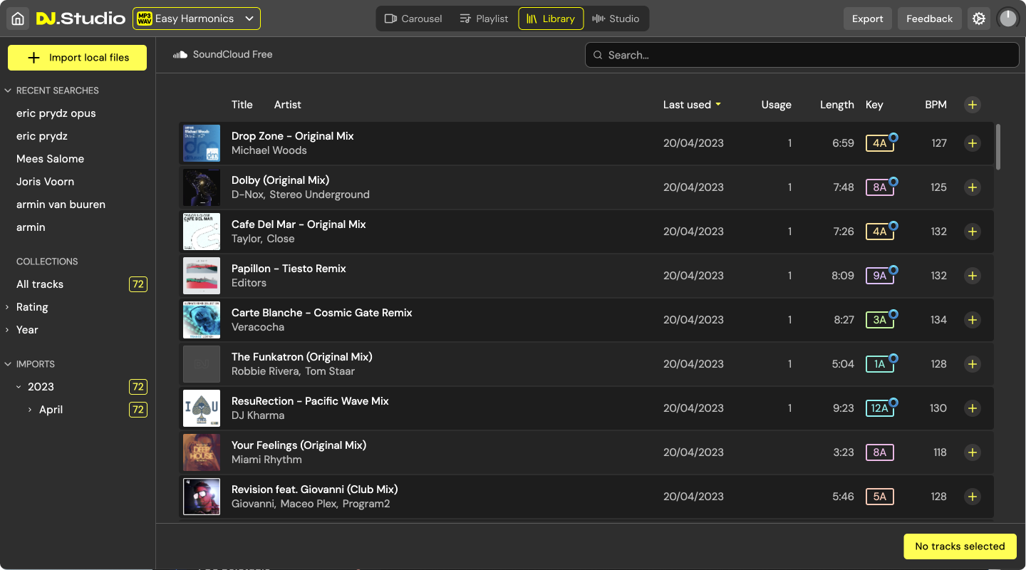 -> Export effortlessly to MP3, YouTube, Mixcloud, Ableton Live, rekordbox, and the other top DJ controllers.