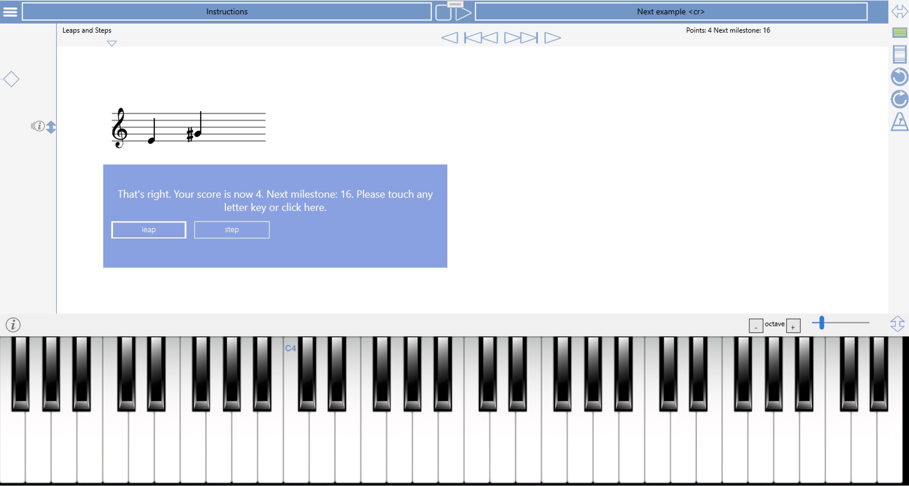 Practica Musica has set the standard in music instruction software since 1987. Now in its 7th edition, it offers a complete music theory and ear training package with over 150 interactive music activities, notation tools, and an included digital textbook with audible examples. It allows progress tracking for school use and its customizable learning activities cover everything from beginner exercises (Up or Down, Leaps and Steps) to real-time melody or rhythm reading, melodic dictation, chord recognition, 4-part writing, and more. Practica Musica does not require an internet connection for use once it is installed, unless you want to connect with a school "Webstudents" account for progress reporting. This classic app won its first award in 1988 (MacUser: Best Education Software of 1987) and is available on both Windows 10/11 and Macintosh computers.