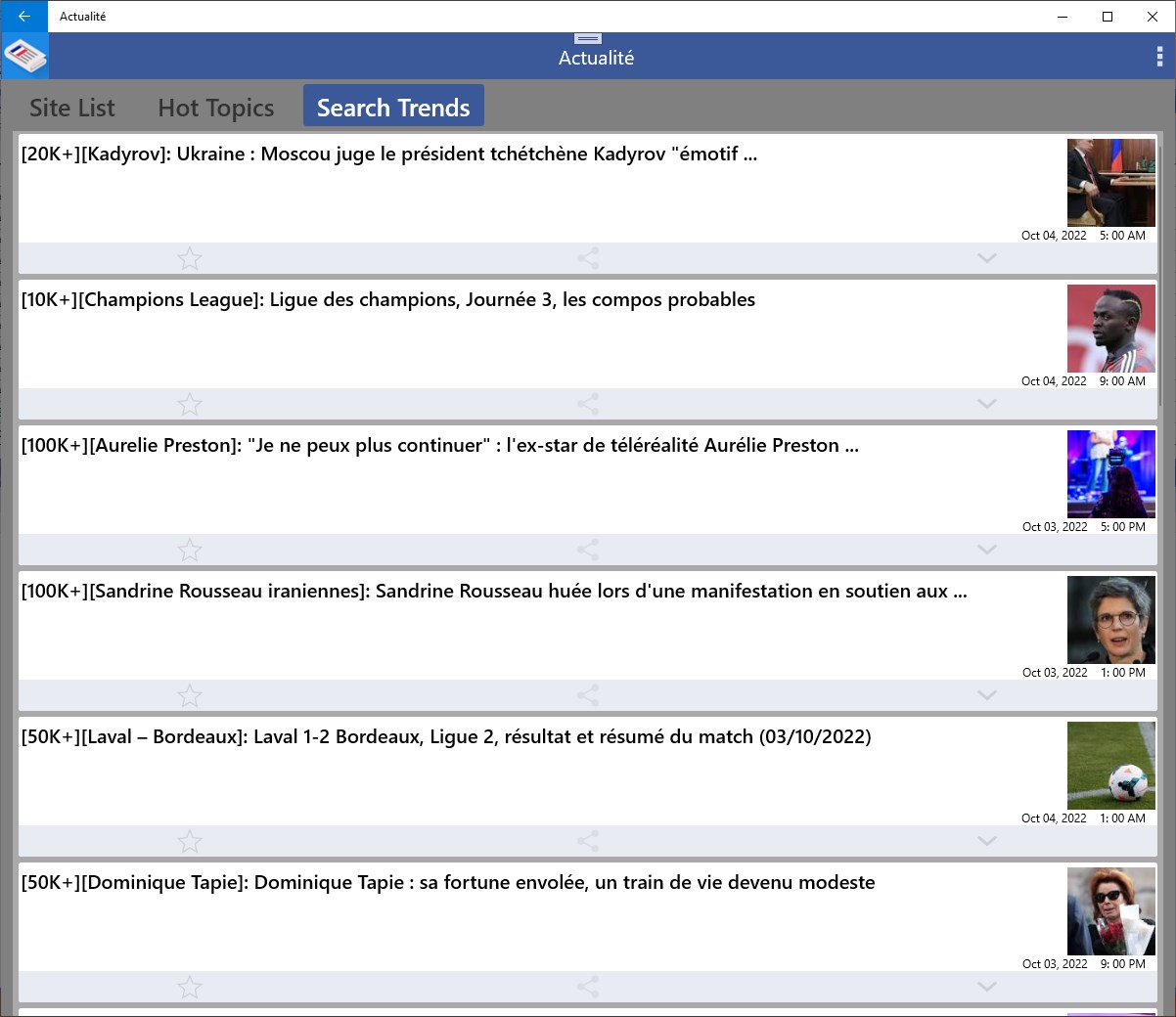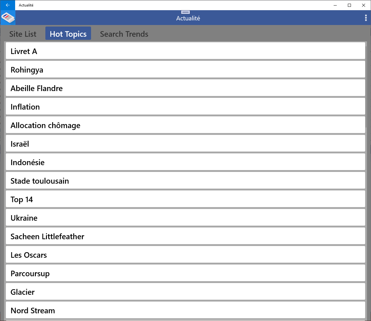 Les Hot Topics apporteront les actualités présentées par liste. Search Trends répertorie les mots-clés les plus recherchés en France.
