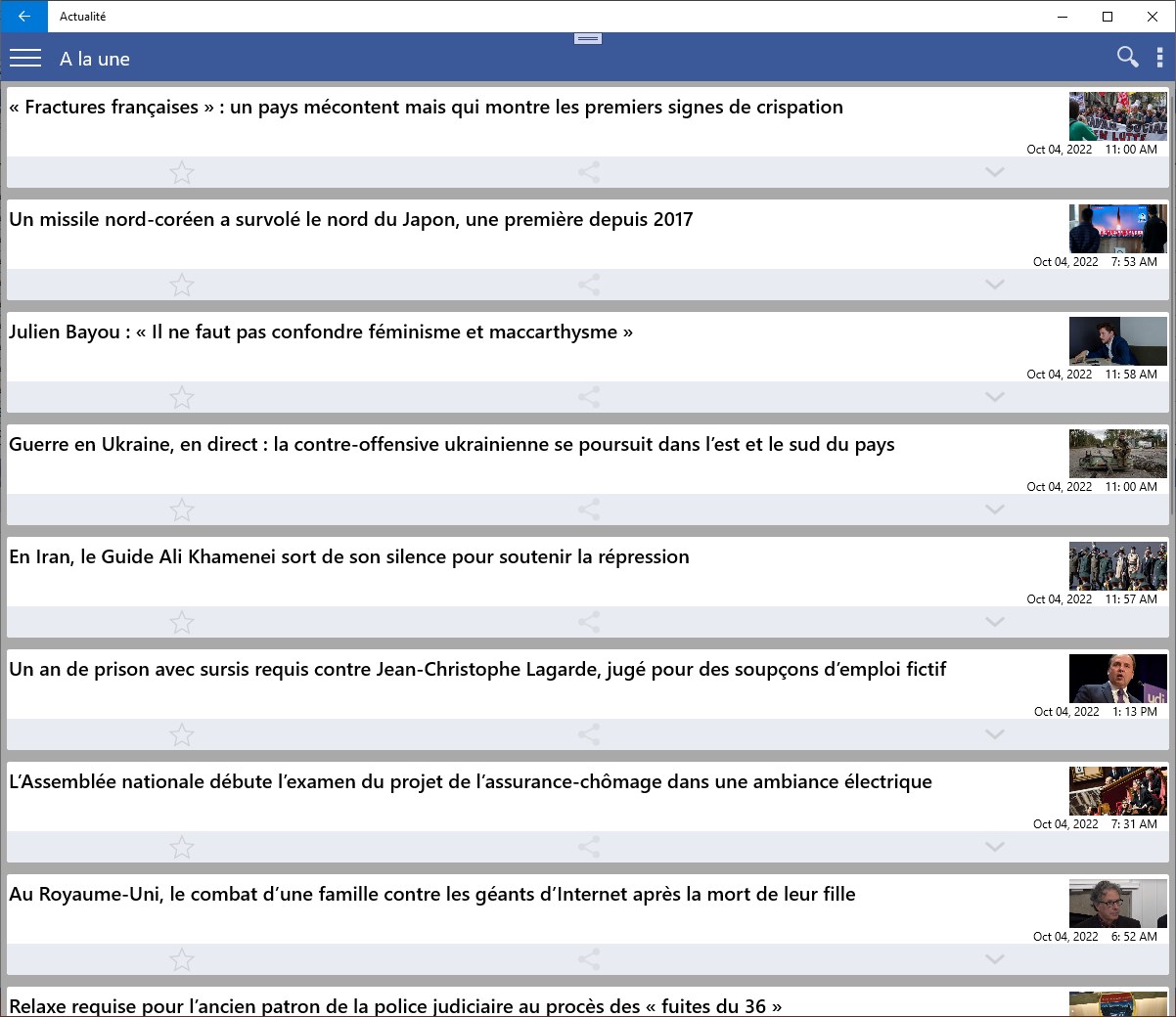 Lire tous vos journaux et sites de actualités en ligne France dans une seule application.