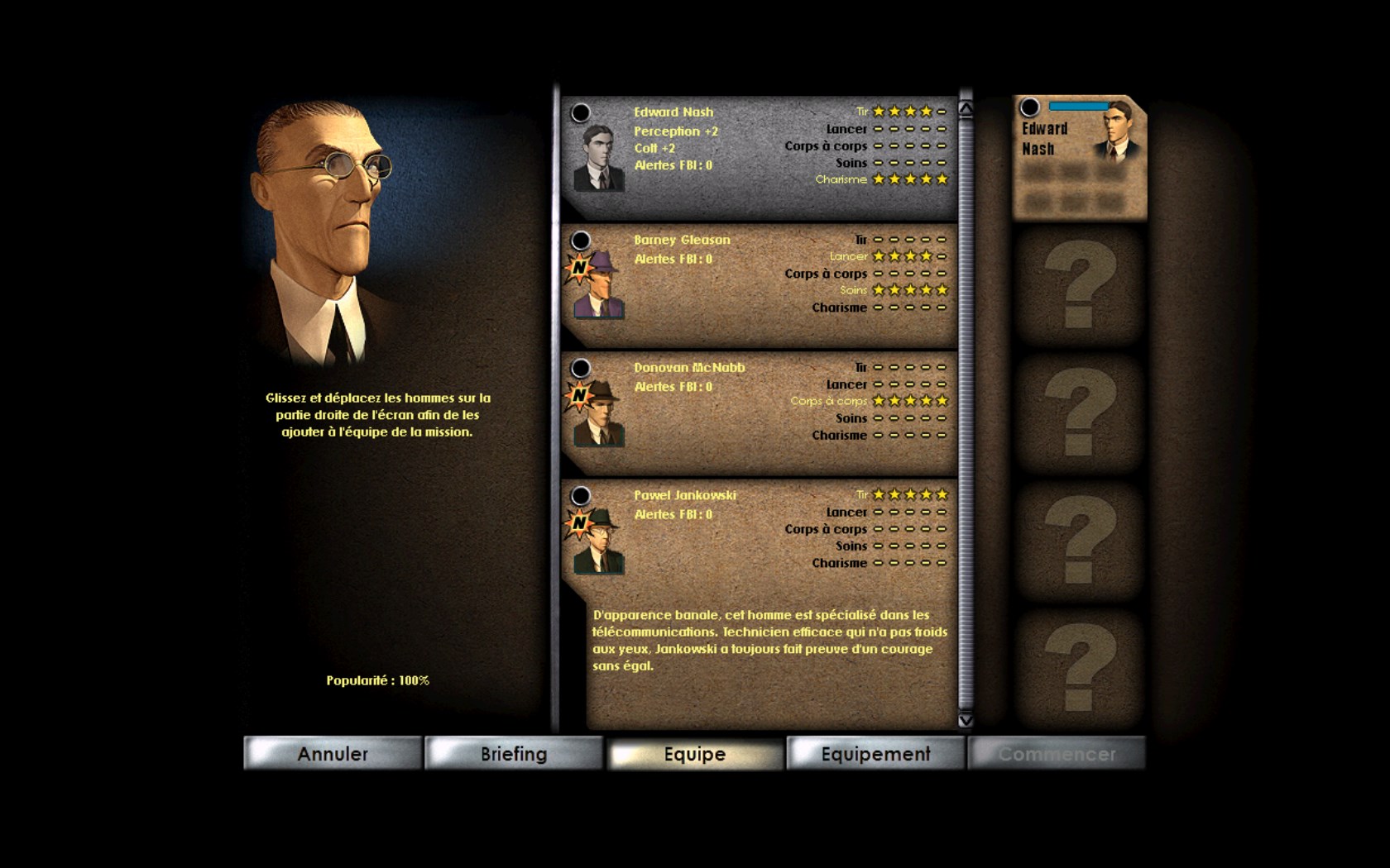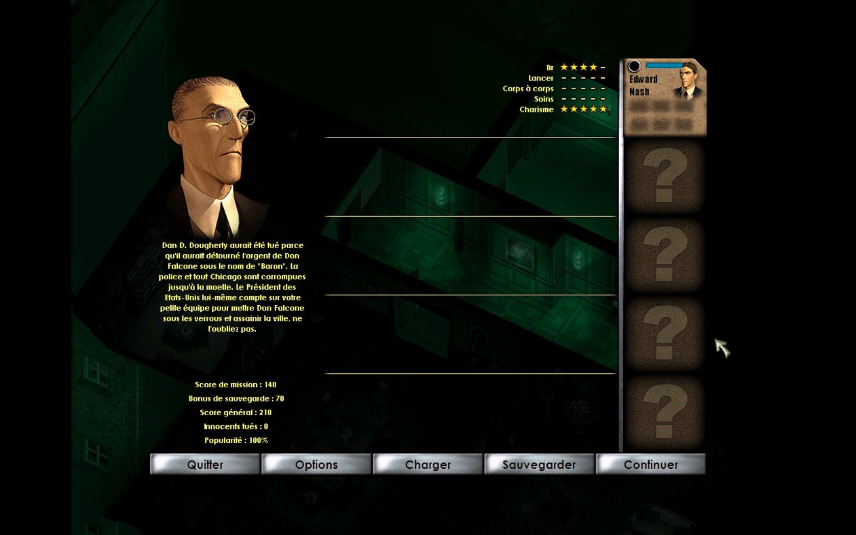 Choose your side: play the mob or the copsby managing a team of 5 characters.RPG Features: Characters have five different attribute areas (shooting, close combat, throwing, charisma, first aid).Many missions and various objectives: escort or get rid of a witness, take over a clandestine casino...When the action gets too hectic , you can use the Slow Motion Modeto efficiently manage your team during the heat of battle.Artificial Intelligence allows Enemies to have varying reactions depending on situations and give very realistic characters,Highly detail graphic sand adynamic lighting systemlends a feeling of complete immersion.