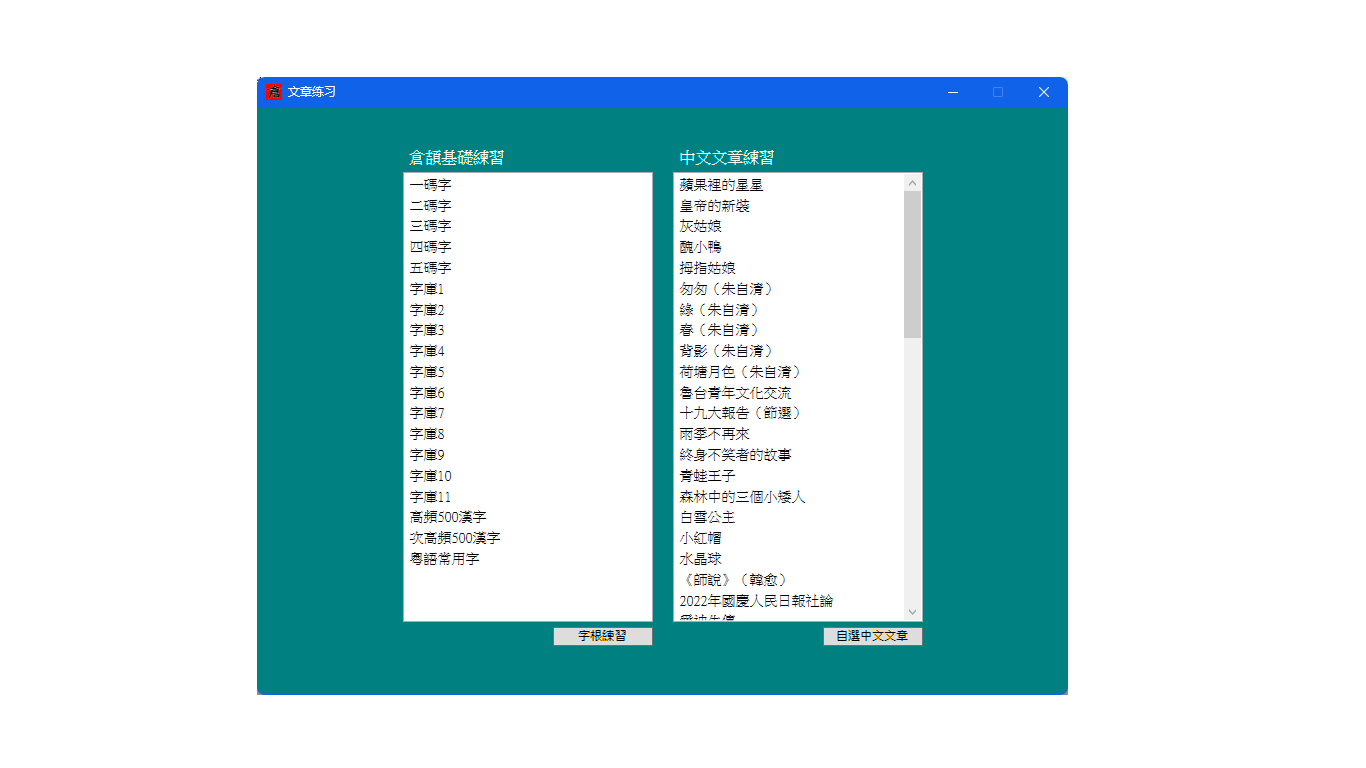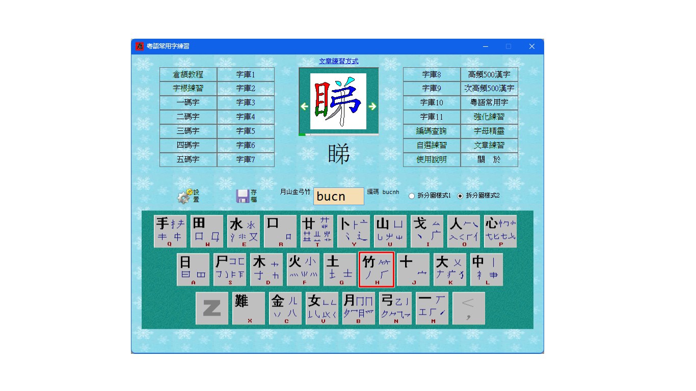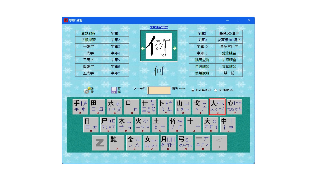 倉頡輸入法的學習和練習軟件。常用的漢字都有編碼和拆字提示,你不再用爲漢字的漢字的拆字而煩惱了,照著拆字圖來練習,可以讓你的倉頡輸入法學習難度降低一半。本軟件提供有倉頡查詢功能,你可以隨時對不了解拆字的漢字進行查詢。