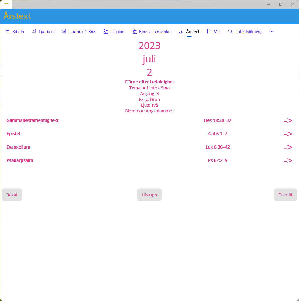 • Följ vår bibelläsningsplan eller kyrkoårets texter