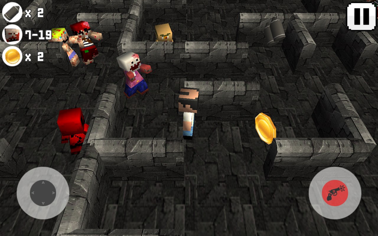 Collect coins, ammunition for use in the game, walk using the 360 control on the left and aim and shoot using the 360 control on the right.