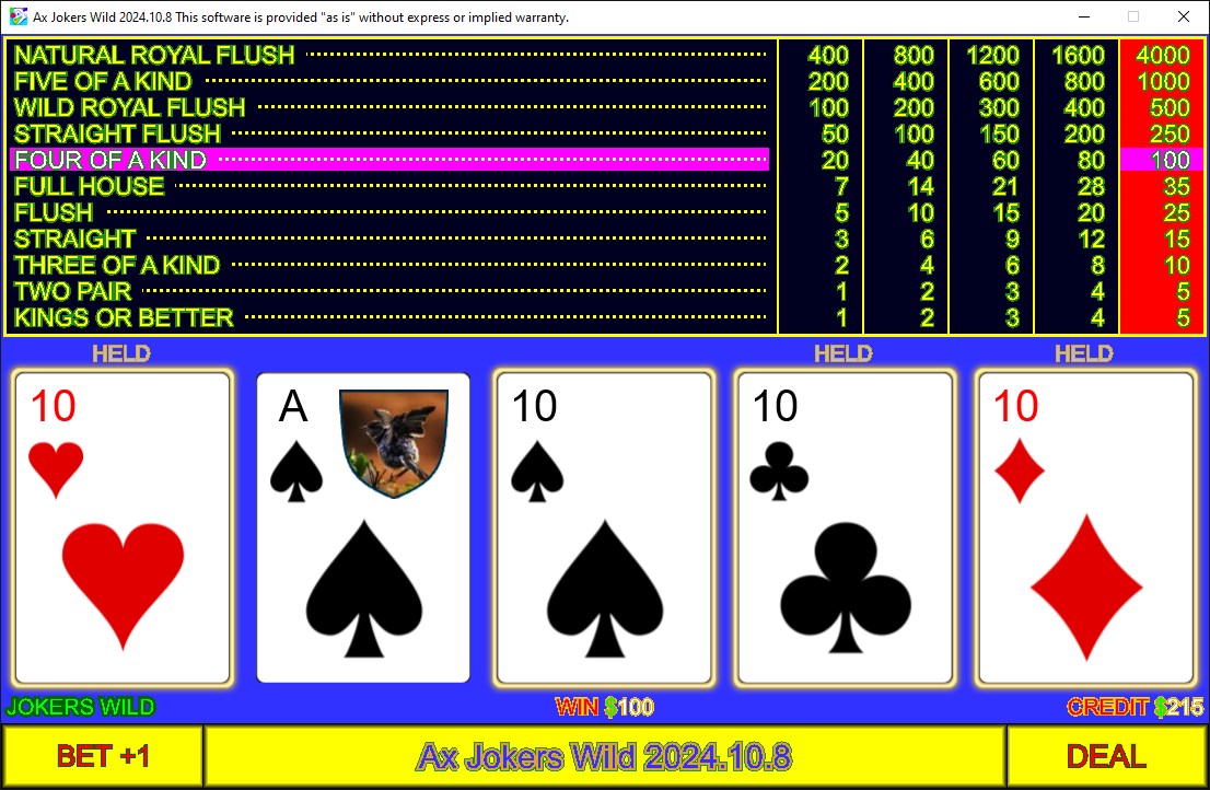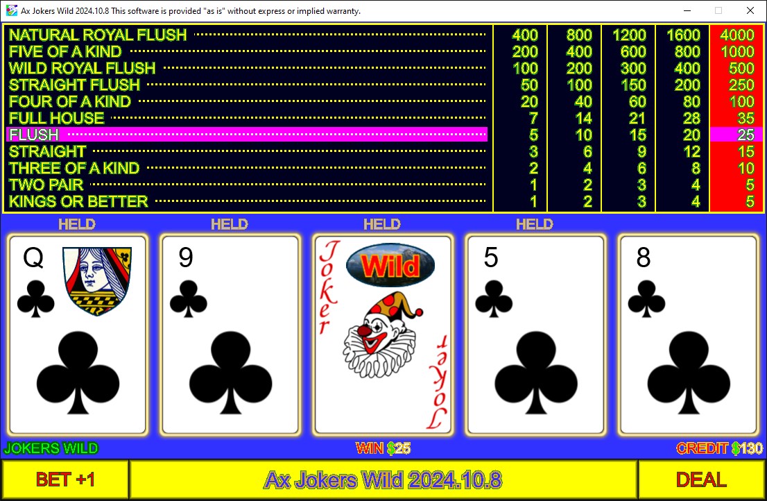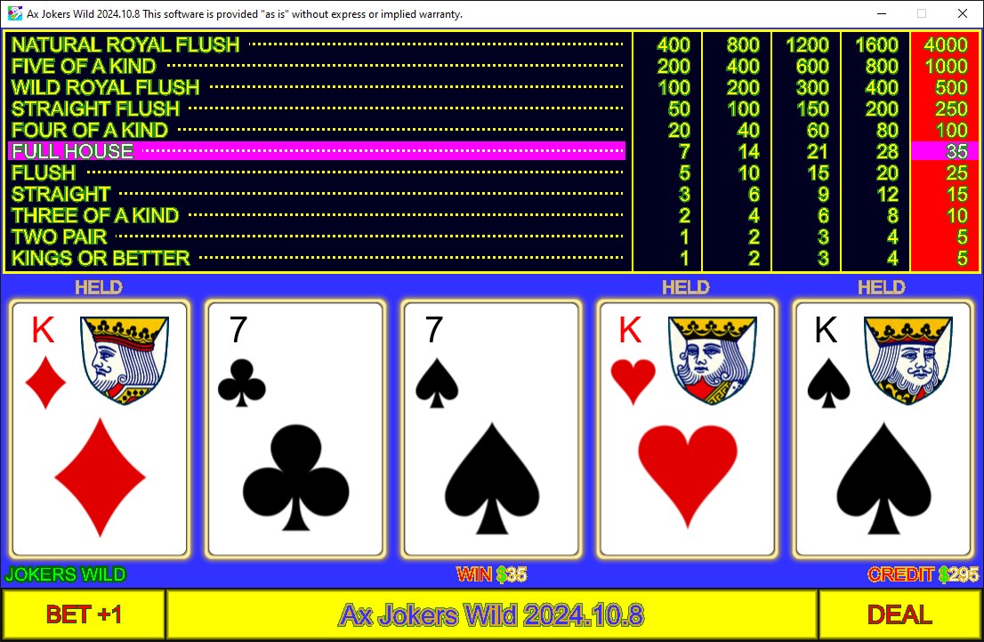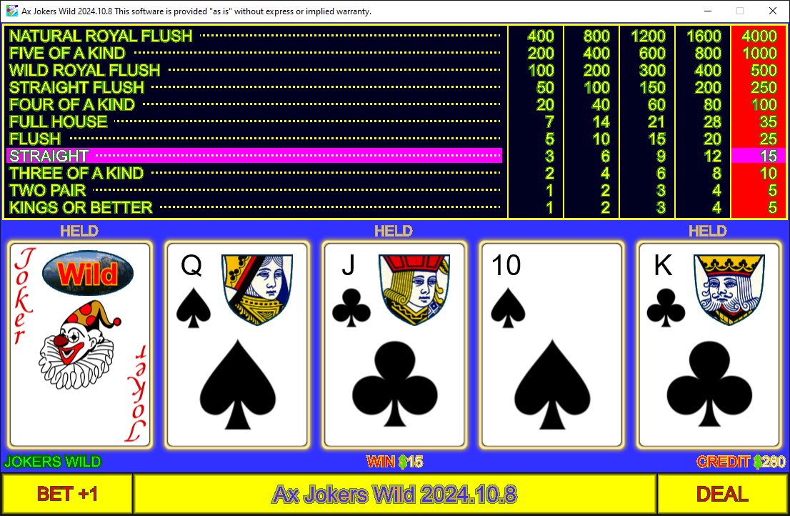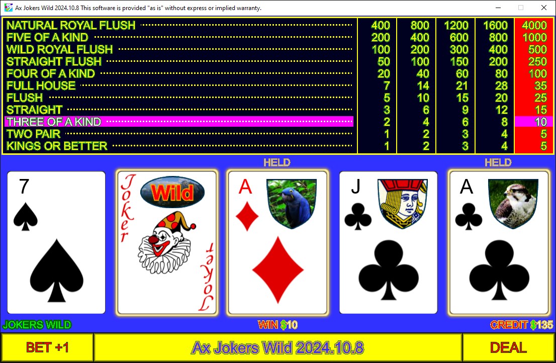 Jokers Wild (also known as Joker Poker) is unique in that it is played with a 53 card deck rather than a traditional 52 card deck. The added card is a joker, which will play the role of a wild card. This extra card increases the odds of achieving a better hand to beat the house.