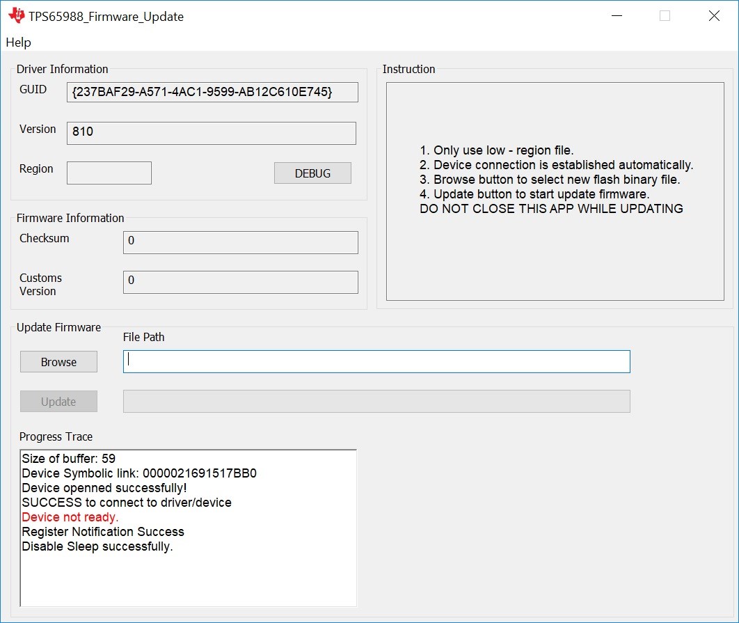 Step 4: Use TPS6598xFirmwareUpdateApp