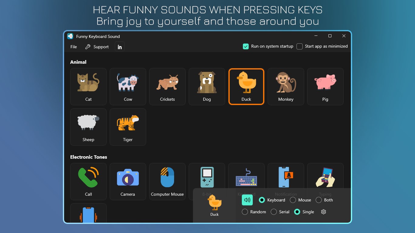 Play fun sounds when pressing the keyboard or clicking the mouse, bringing joy to you and those around you.