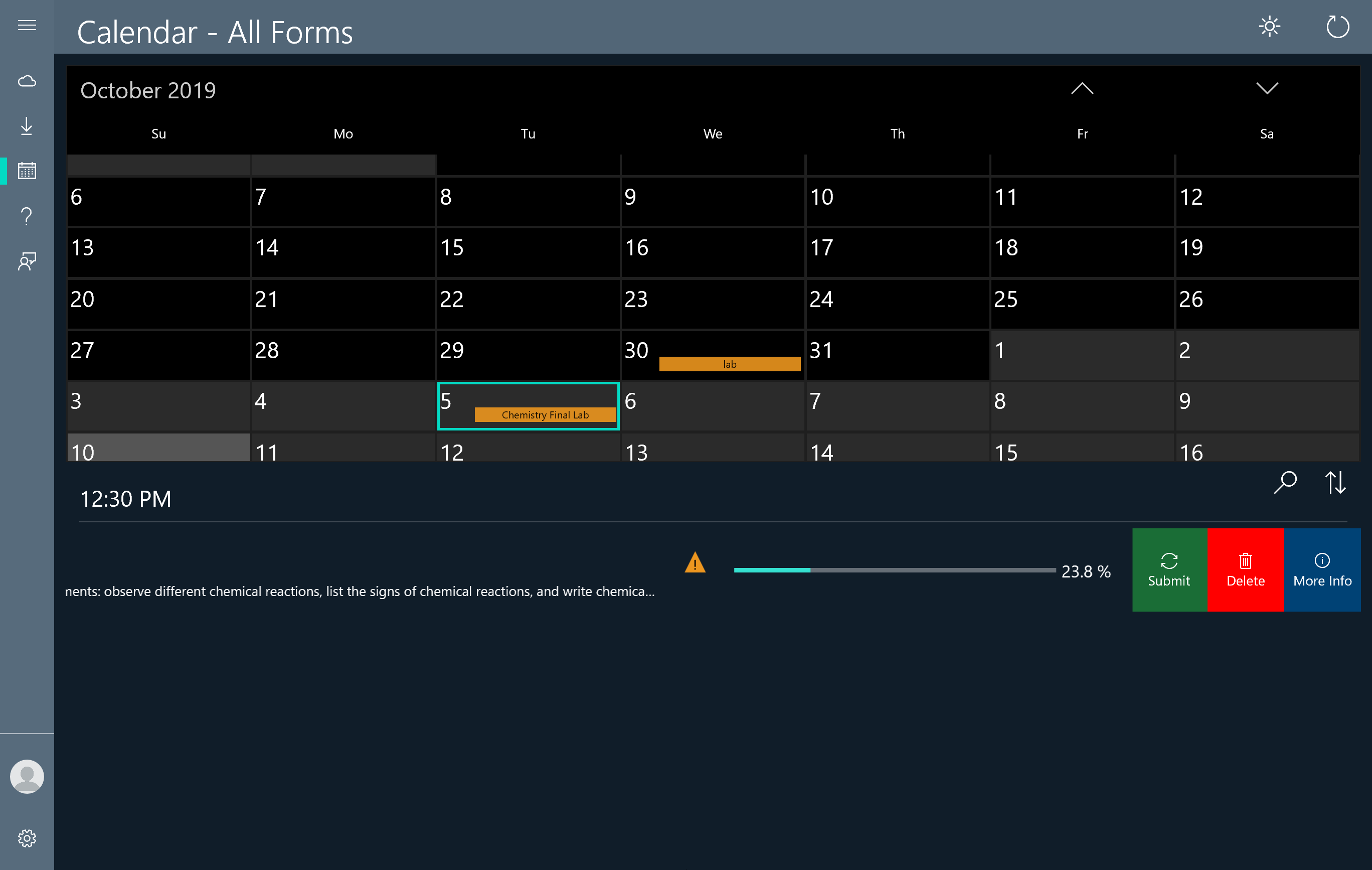 Download your forms offlineCapture Evidence in multiple formatsMultiple Evaluation ModesOutcome and KPI BasedGeographic Planning of Forms and Form TasksOutlook calendar integration and scheduling capabilitiesSurface Pen and Dial SupportDark and Light Themes