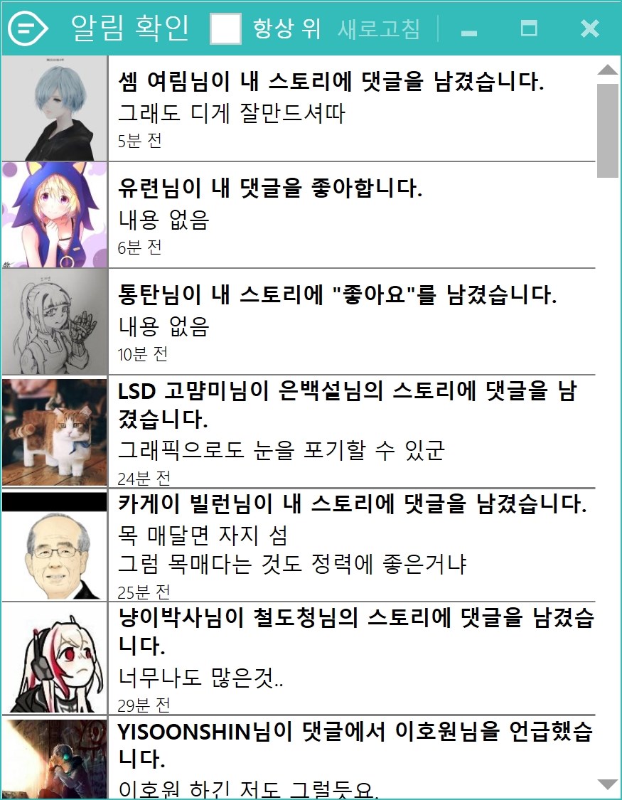 카카오 스토리의 전반적 기능을 PC로 사용하실 수 있습니다.
