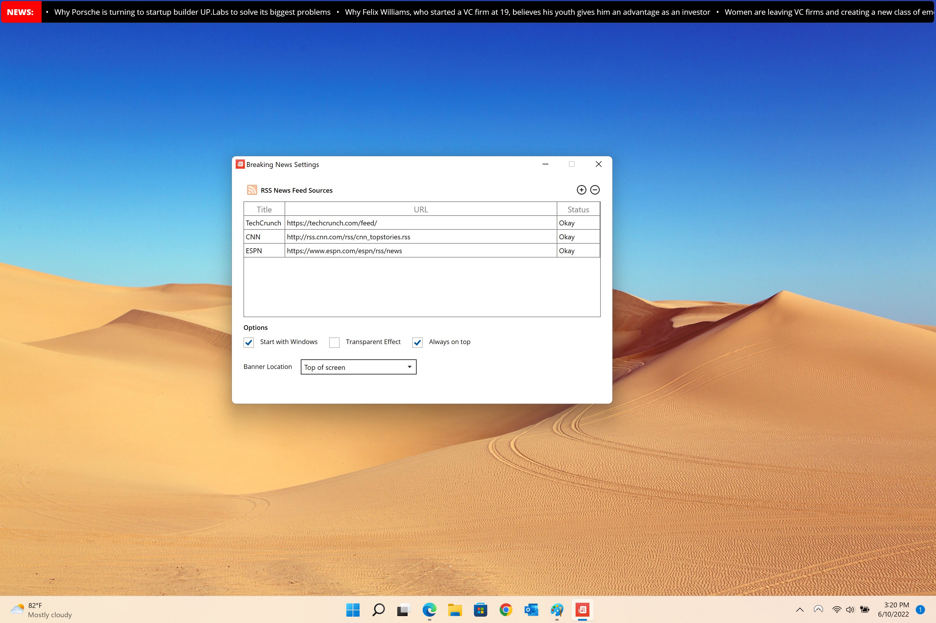 Get access to all your news and headlines from your desktop, only one click away!
