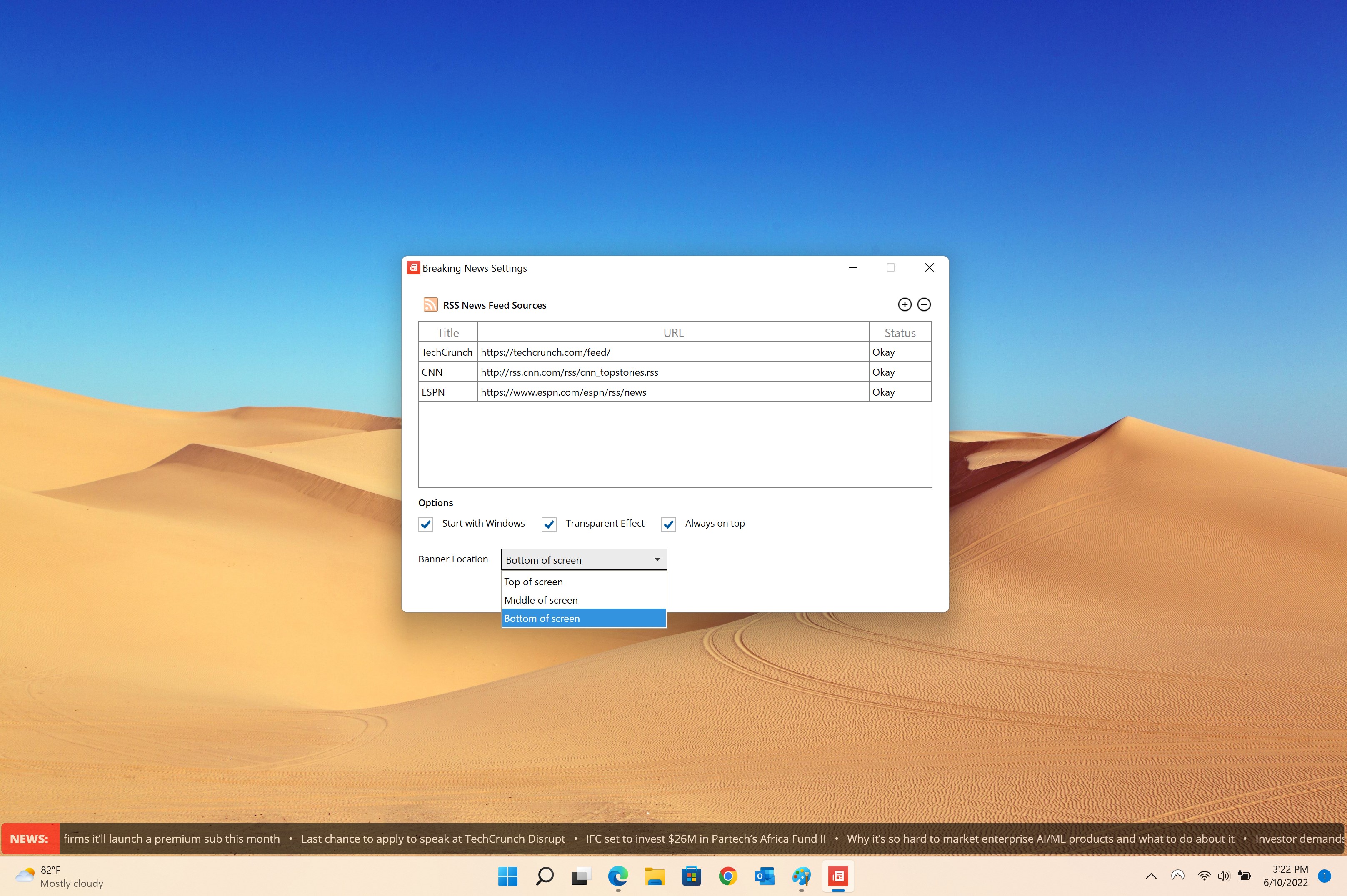 With News Ticker Widget, a simple scrolling ticker is added to your desktop, allowing you to add different RSS news sources you want to keep track of. Simply click the headline you're interested in, and that web page will be automatically opened for you.