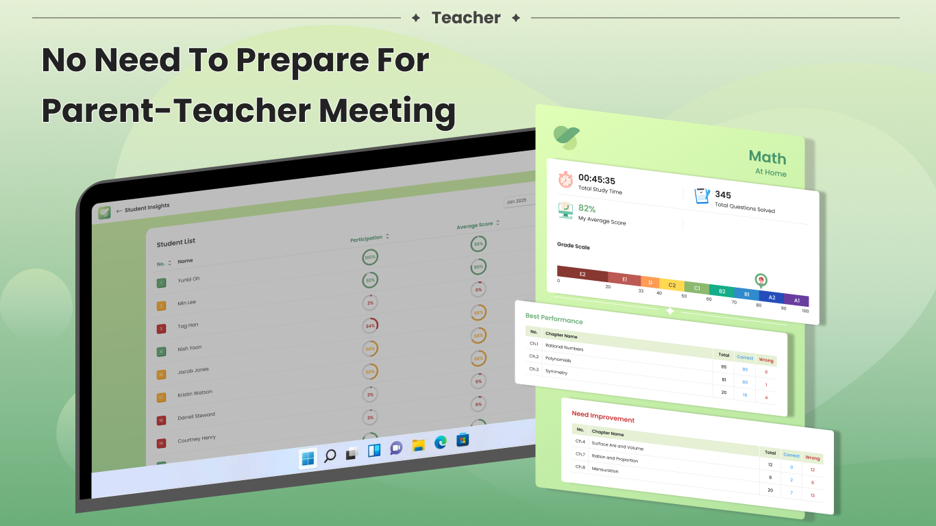 1. Get a big picture of the progress in ALL classes & subjects through a dedicated portal