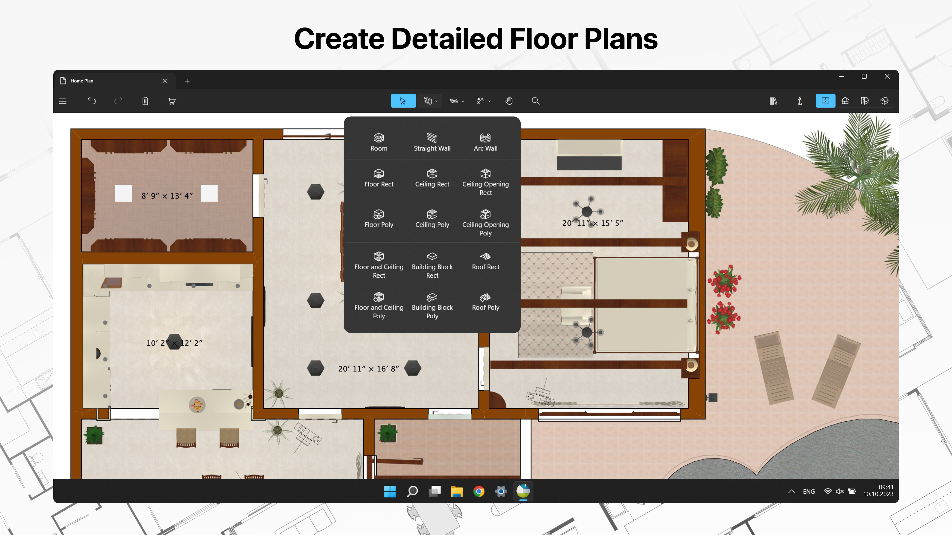 • Create detailed 2D floor plan layouts;